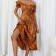 Linka Off-Shoulder Tie Back Midi Dress Marbled Print Beige