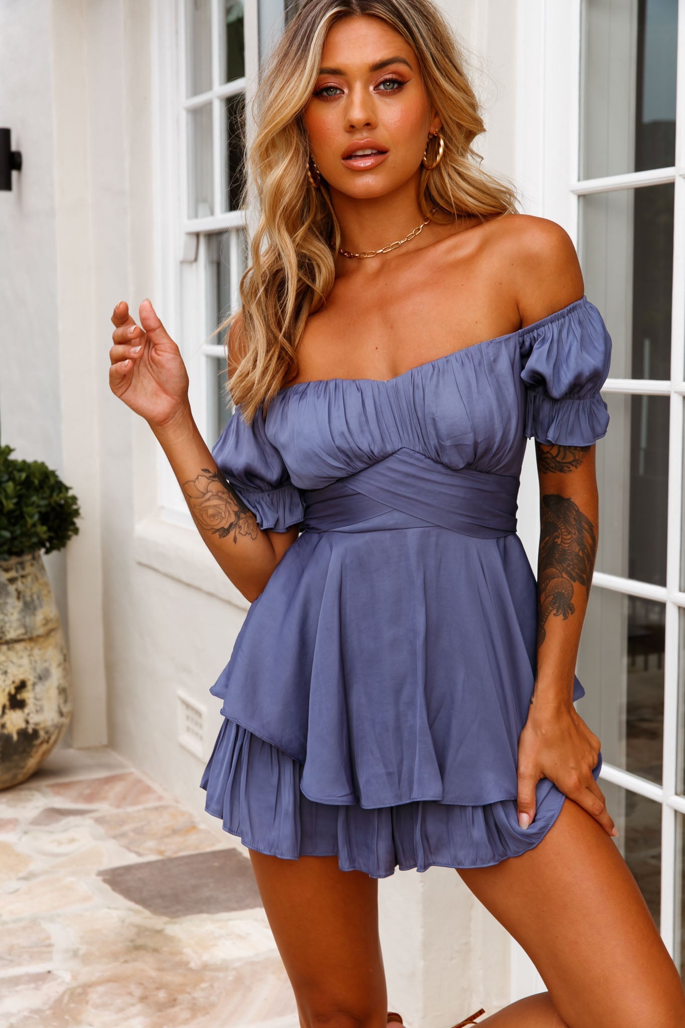 Stop what you are doing because this romper deserves a moment. Jaws will drop when you strut by in our adorable Linka Romper. Featuring an off-shoulder style and the cutest puff sleeves, we're in love! Perfect for a girls' night out or special birthday celebration. Team it with stilettos and statement earrings.