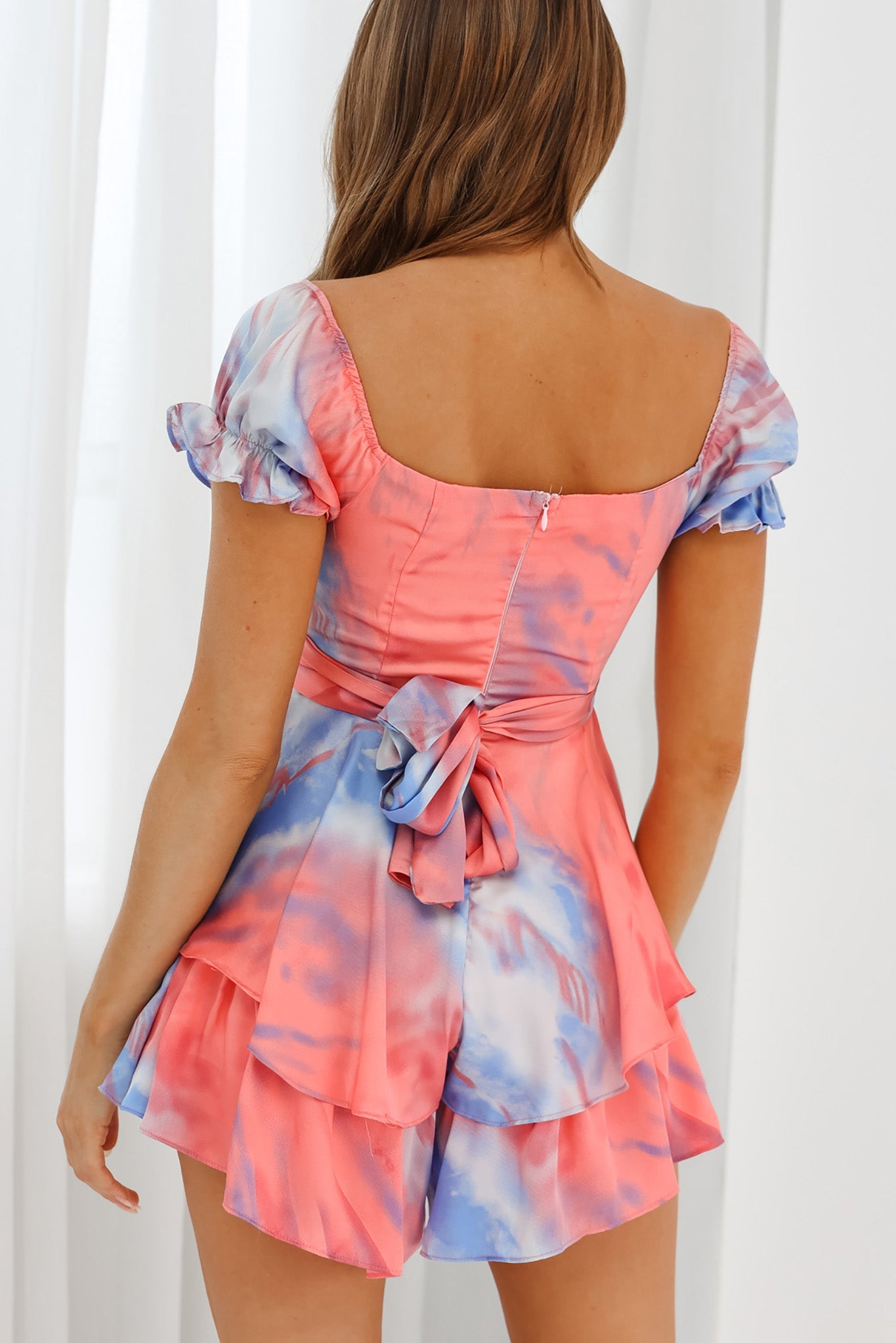 Linka Off-Shoulder Tie Back Romper Tie-Dye Pink/Blue
