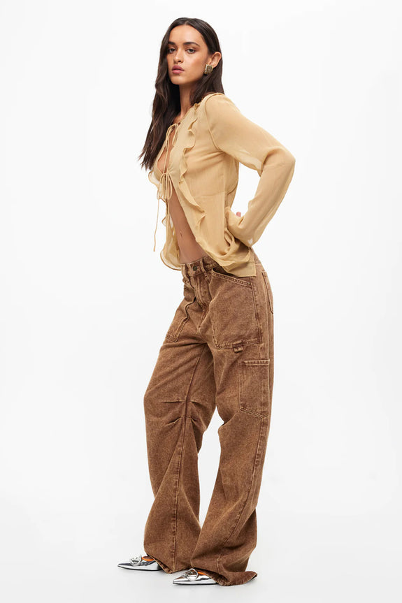 We've fallen head over heels for the Barely There top by LIONESS. We are loving its romantic ruffles and sheer fabric. Perfect for a date night teamed with the Miami Vice jeans and pointed-toe boots for a look that will make them stop and stare.