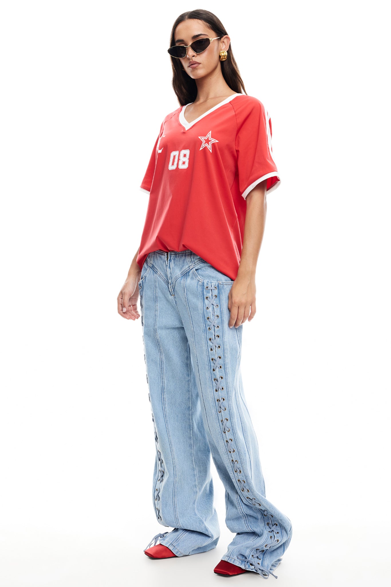 Channel your inner It Girl in the Spectate top by LIONESS. It's a jersey style with contrasting trim and monogram detail and we are living for it. Perfect for coffee dates with your besties teamed with wide-leg jeans and flats for an on-trend look we are loving.