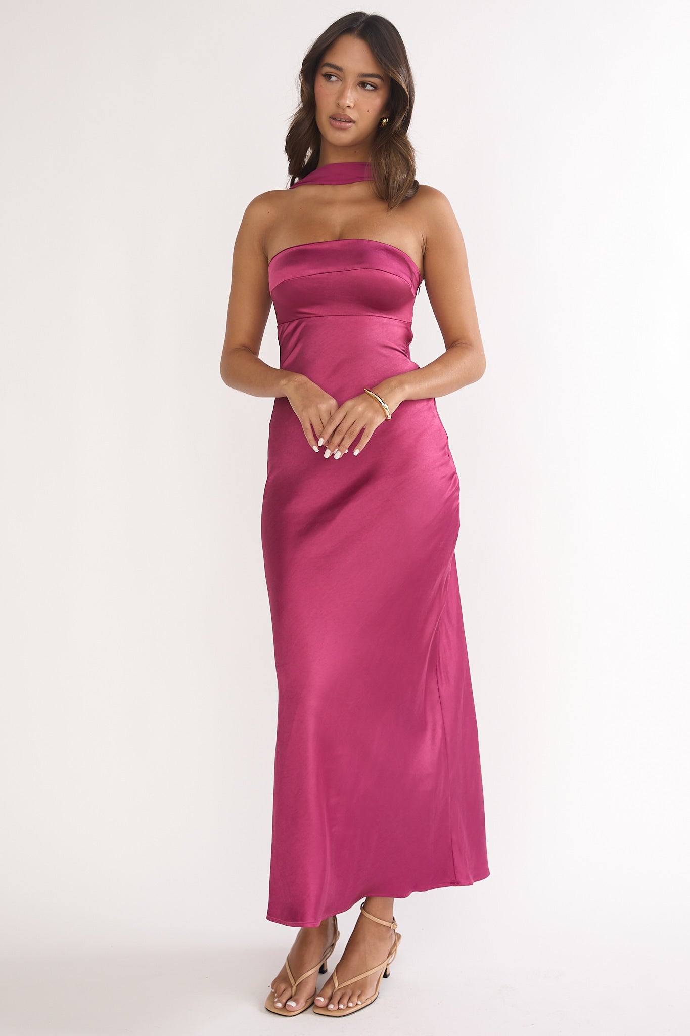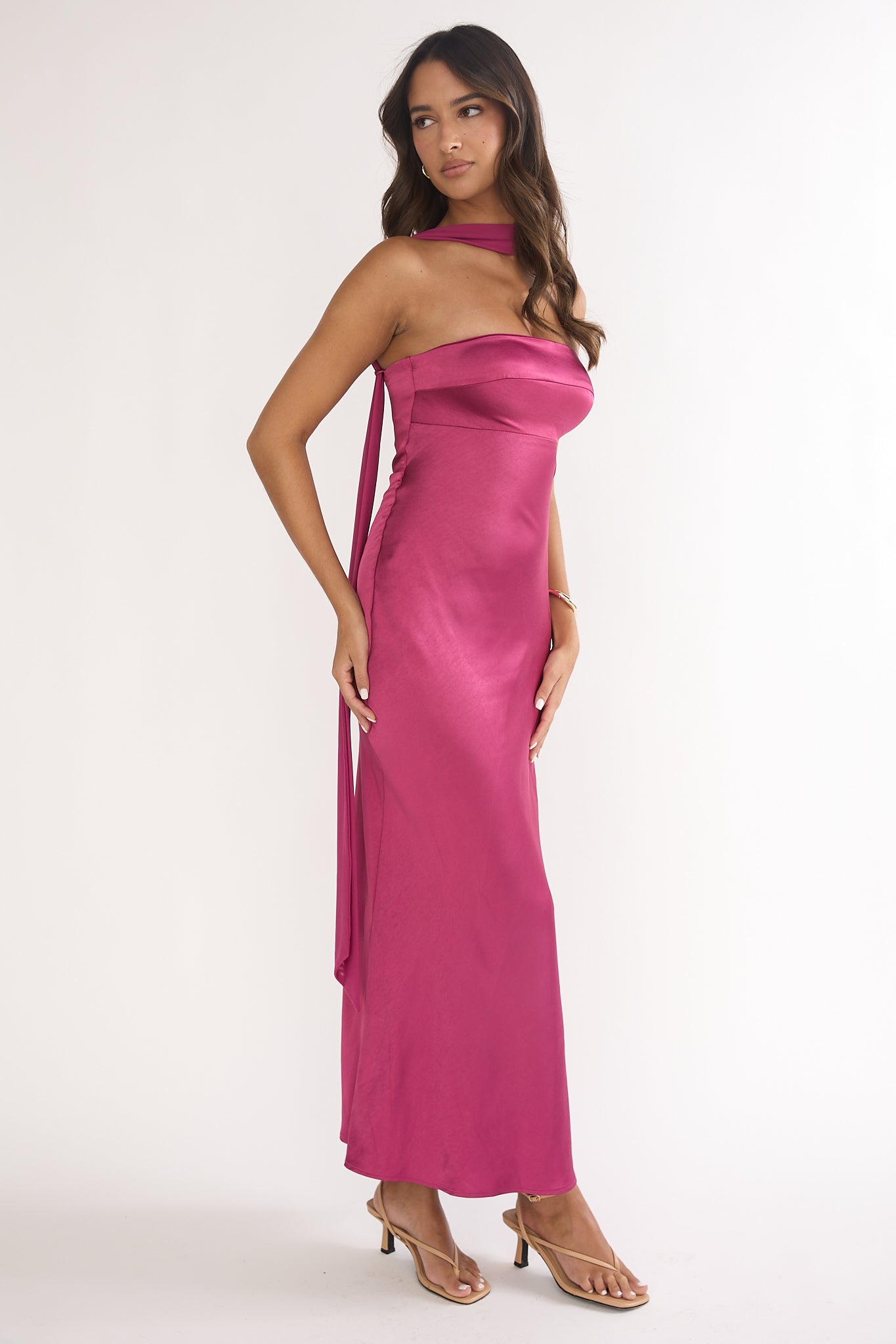 Lior Detachable Shoulder Maxi Dress Burgundy
