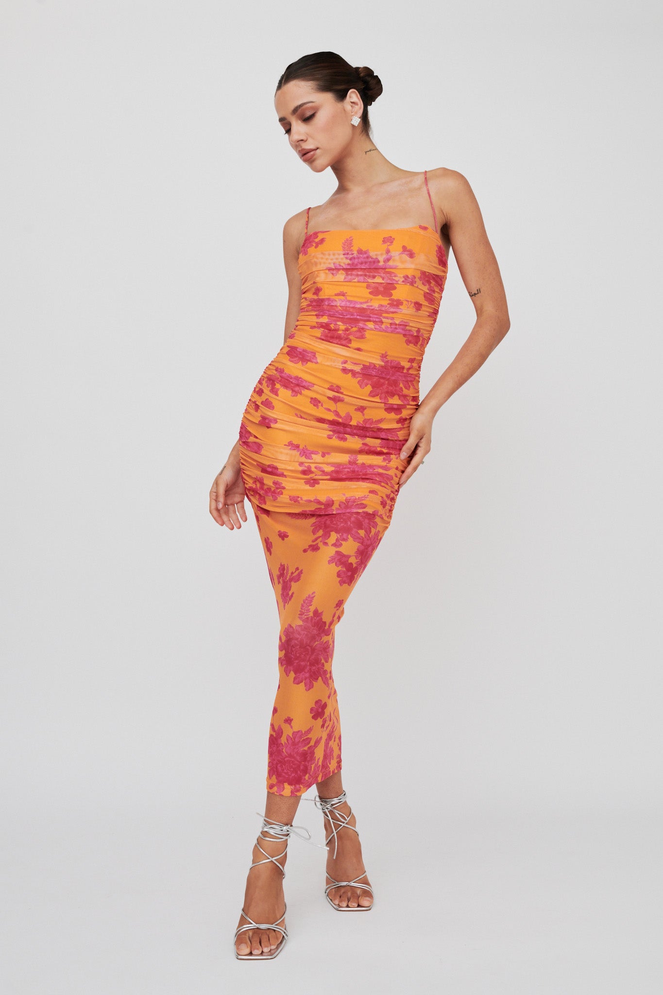 - Orange floral midi dress