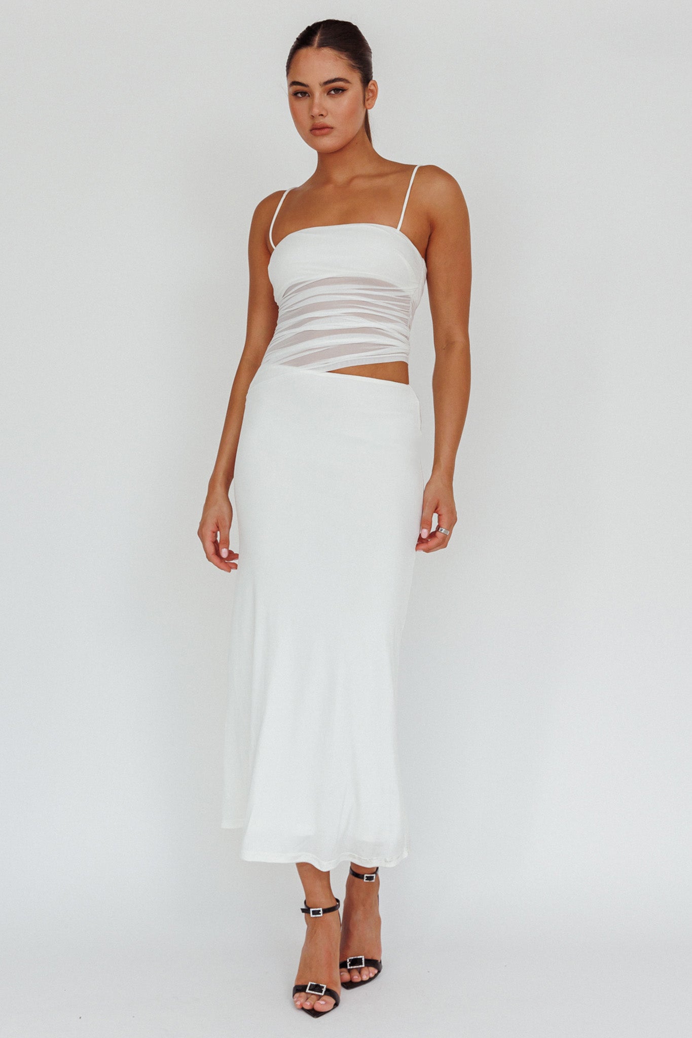 You'll leave them speechless in our hot Lorely midi dress. Featuring a cut-out waist with ruched mesh in the bodice. It's perfect for a girls' night out. Team it with white heels and a purse and get ready to slay!