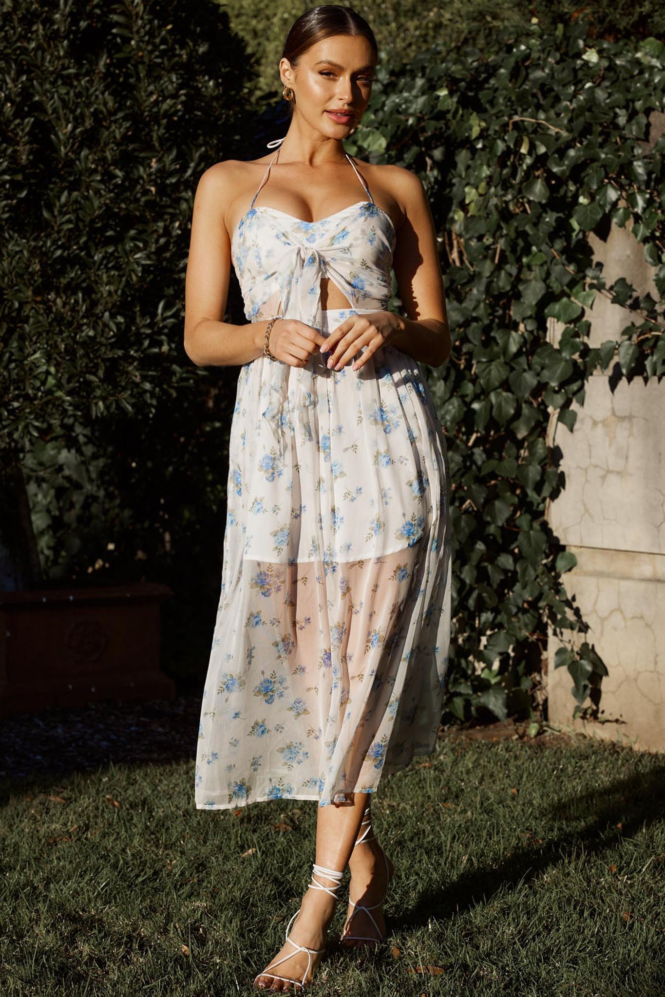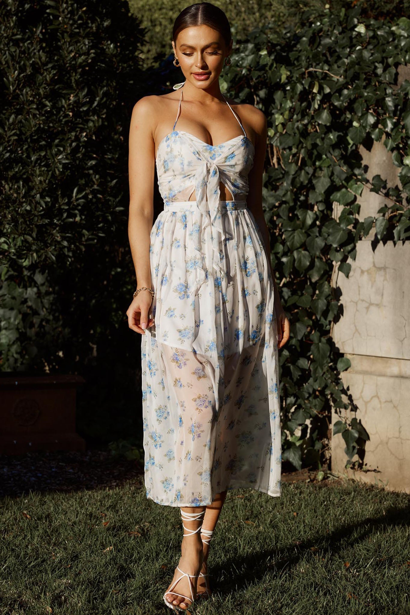 We've fallen head over heels for our dreamy Los Feliz dress. Featuring the prettiest tied bust and halterneck style, you'll be flooded with compliments! Perfect for Sunday Brunch with your besties or a garden wedding. Team it with tan mules to complete the look.