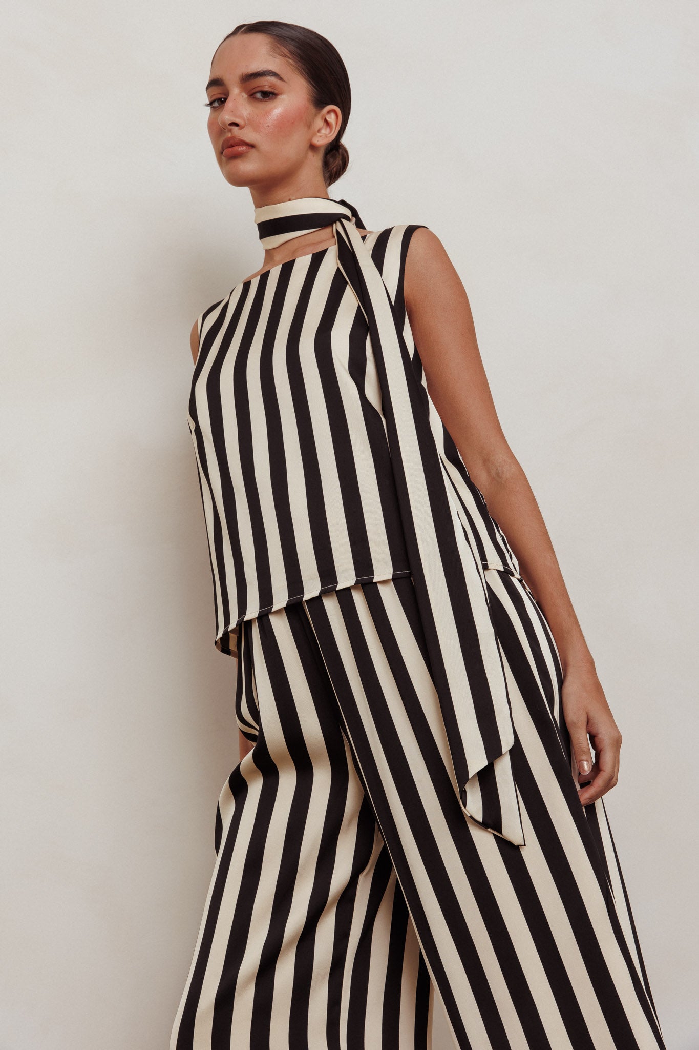 Step into sophistication with our Love Galore top—a timeless piece designed to make a statement. Featuring a sleeveless design and matching neck tie, this top offers a refined touch to any wardrobe! Whether you're heading to the office, a special event, or a chic evening out, it is a versatile staple you'll reach for time and time again. Team it with its matching pant or mix and match for endless possibilities!