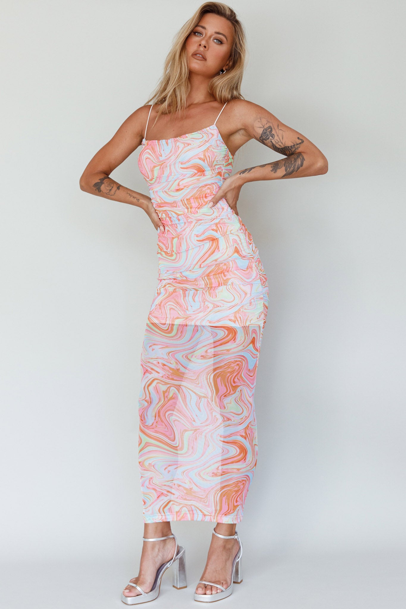 Turn up the heat in our Love In Miami midi dress. Featuring a printed mesh overlay and sexy, lace-up back. It's perfect for a night out on the town with your girls, dancing 'til dawn! Team it with strappy white heels for a hot look that will turn heads.