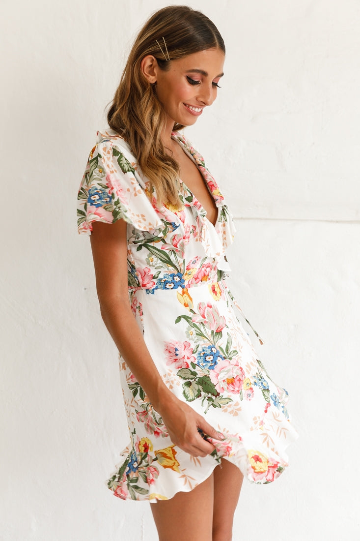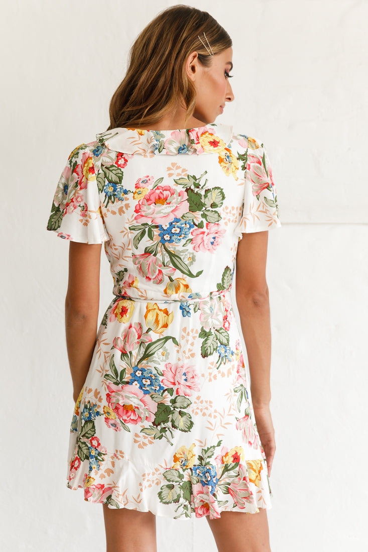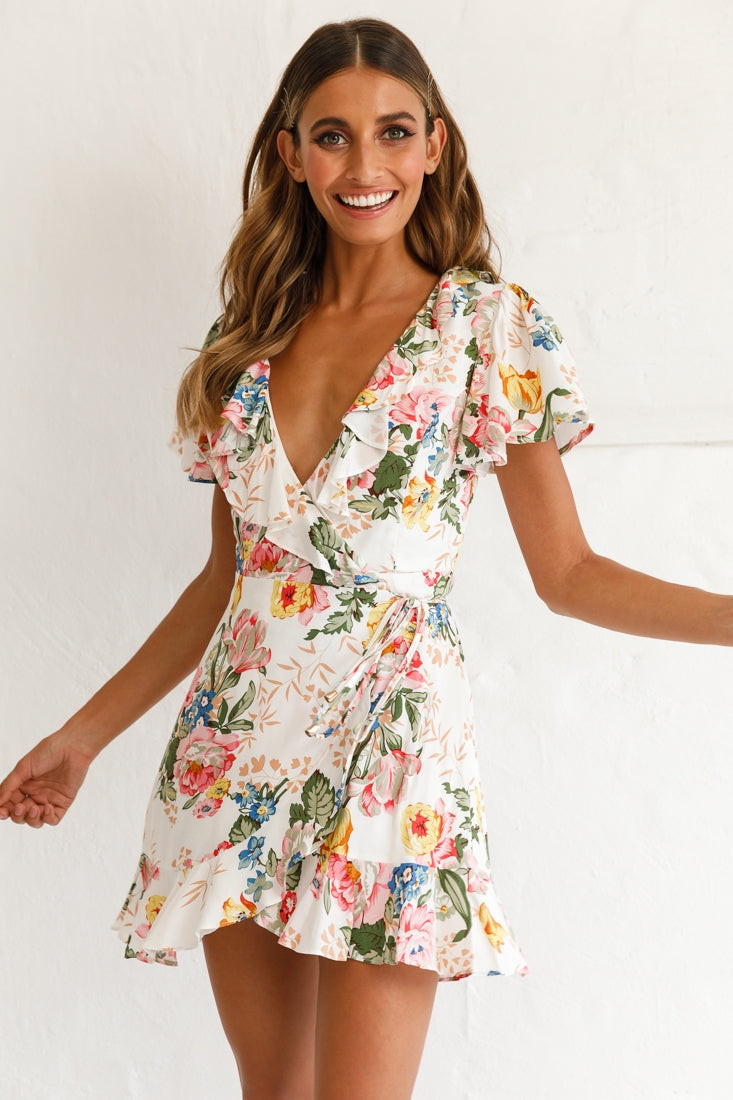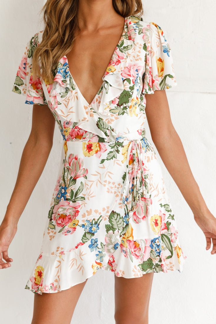 In the words of Taylor, "it's a love story, baby just say YES". And we are saying yes to this romantic floral dress! Fully lined, it features floaty angel sleeves, a ruffle neckline, a gorgeous wrap style with string ties and golden toggles. Perfect for a picnic in a gorgeous garden setting with your Prince Charming. Team it with canvas wedges and a girly basket bag.