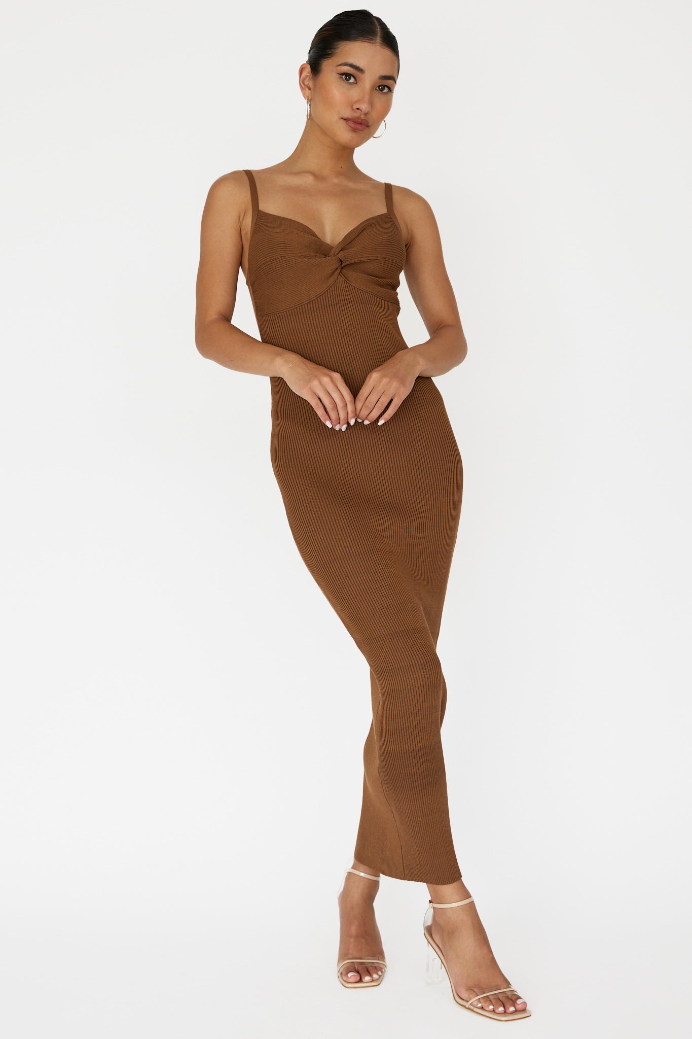 Lover's High Twist Bust Knit Midi Dress Chocolate
