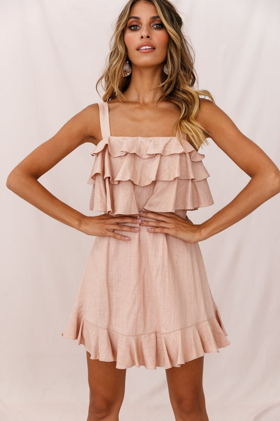 Capture their hearts in our super sweet Lucille Dress. Fully lined, it features a tiered ruffle bust, A-line skirt and adjustable mid-width straps. Perfect for a mall day and lunch with your bestie or a stroll along the beach boardwalk with bae. Team it with tan sandals and a tote for a cute, casual look we are loving.