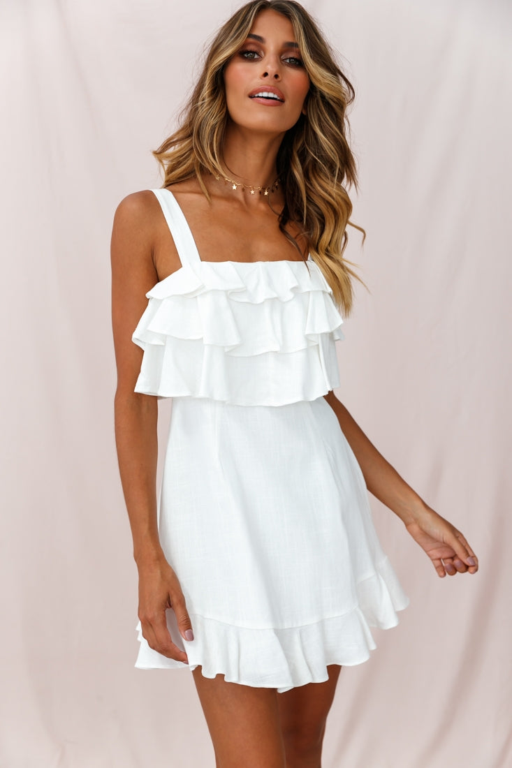 Capture their hearts in our super sweet Lucille Dress. Fully lined, it features a tiered ruffle bust, A-line skirt and adjustable mid-width straps. Perfect for a mall day and lunch with your bestie or a stroll along the beach boardwalk with bae. Team it with tan sandals and a tote for a cute, casual look we are loving.