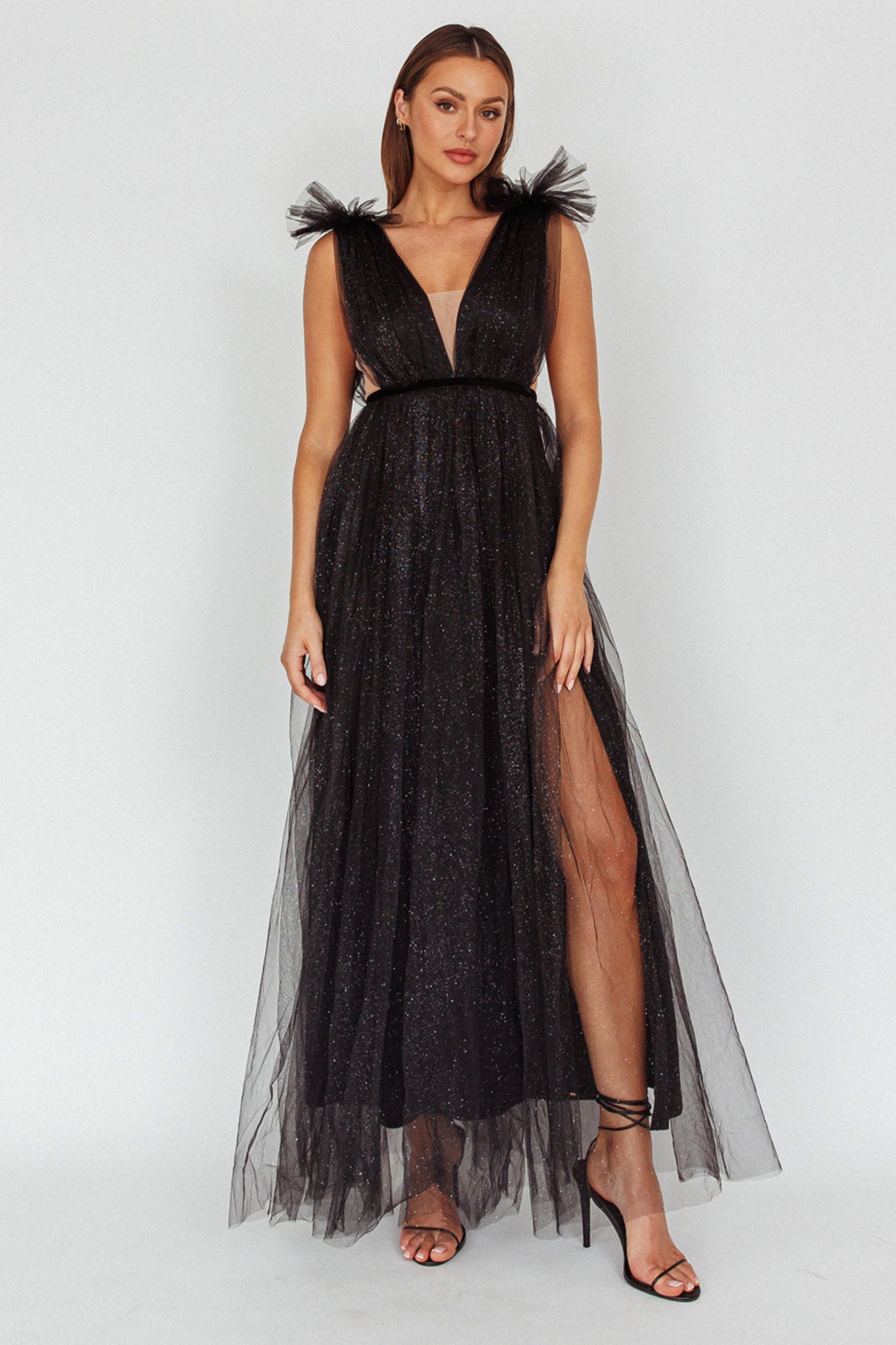 Steal the show in our gorgeous Ludivine midi dress. We are obsessed with its pretty, glitter mesh overlay and shoulder accents. Perfect for a wedding or special occasion! Team it with black, strappy heels for a look we are loving.