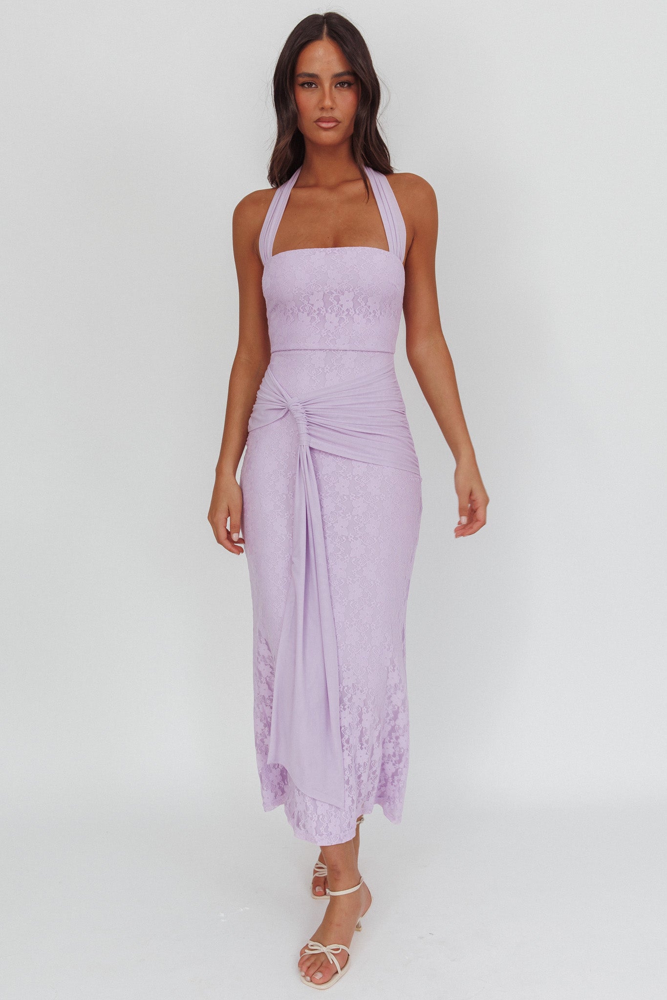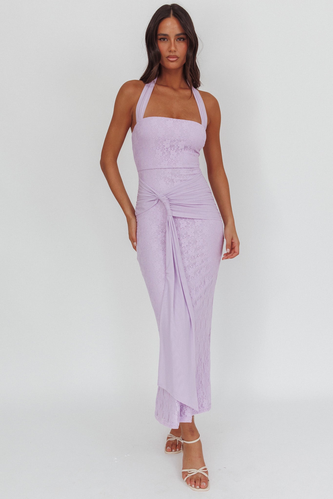 Luli Waist Sash Halter Maxi Dress Lace Lilac