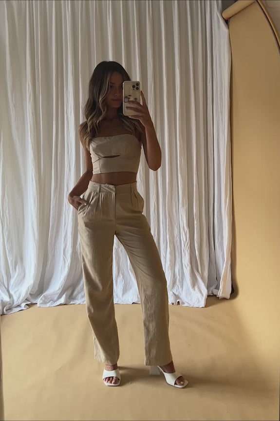 You will look super chic in our gorgeous Lyrics pants. Featuring a chic, straight leg cut and side pockets. Perfect for weekend brunch with your besties teamed with its matching crop top and mules.