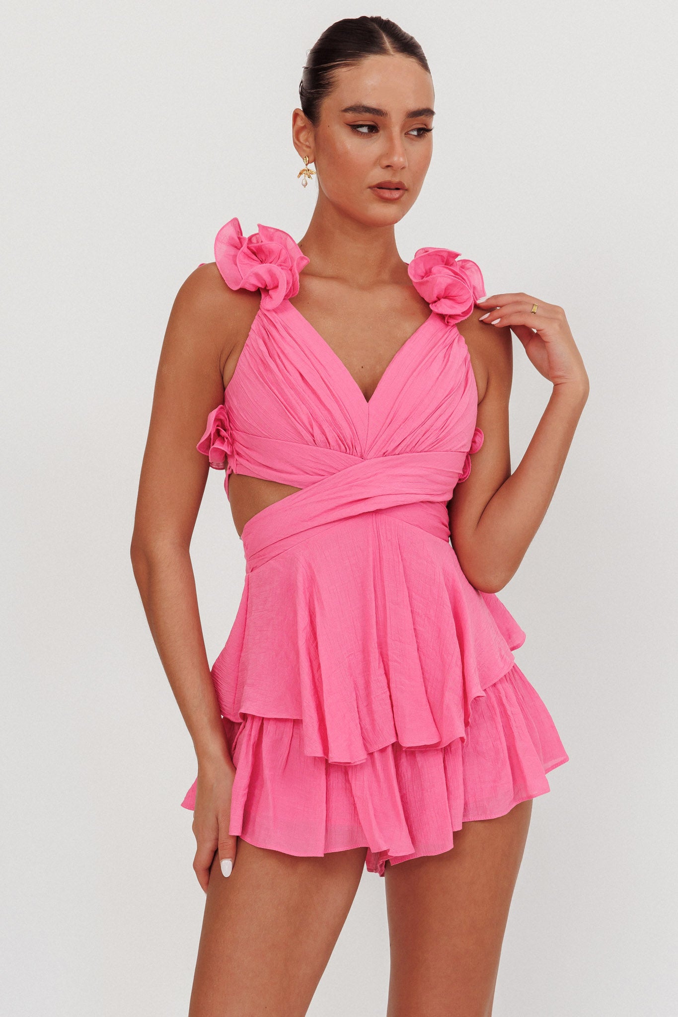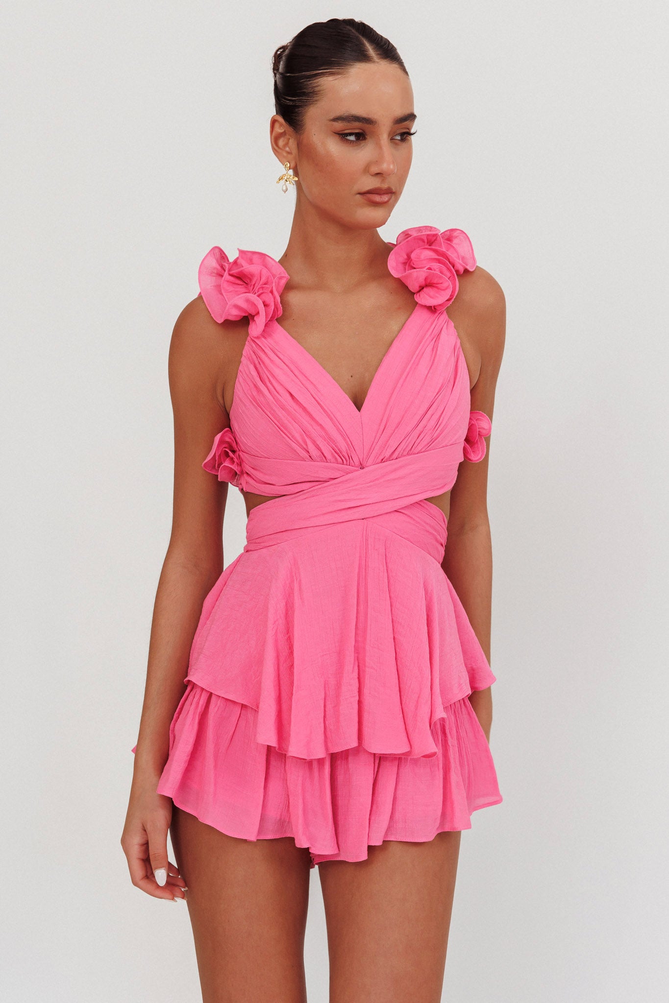 Sweep them off their feet in our stunning Madara romper. It features a feminine ruffle trim and a strappy, lace-up back. It's perfect for a garden wedding or birthday brunch with your fave girlies. Team it with strappy, white heels and a clutch for a show-stopping look.