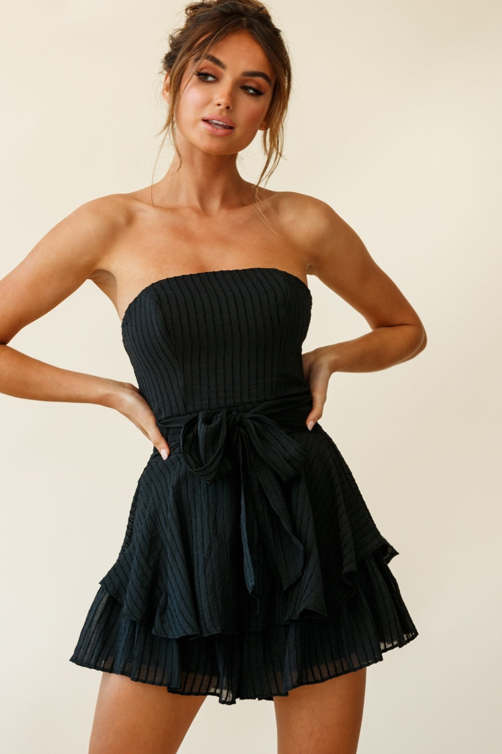 Get ready for jaws to drop as you strut your stuff in our Maddox romper. Featuring soft, romantic fabric, layered ruffle skirt and on-trend bandeau style, this romper is feminine-chic and perfect for day or evening events. Team it with nude heels and statement earrings for a super cute look.