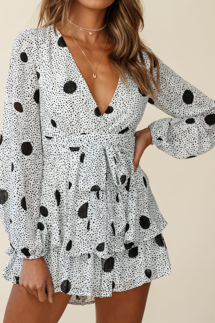 Maddox Fit & Flare Long Sleeve Romper Large Spot Print White