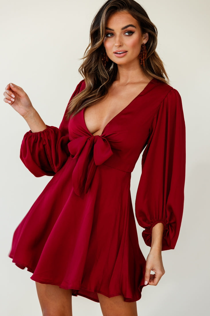 Get ready to turn heads as you strut your stuff in our super cute Madison dress. Featuring a tie-up bow bust, long balloon sleeves, invisible zipper in the back and an A-line skirt that floats as you walk. This dress is feminine-chic and perfect for day or evening events. Team it with nude heels and statement earrings and watch jaws drop.