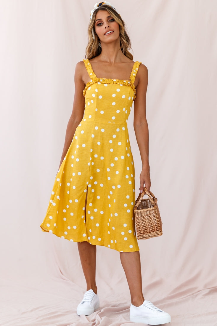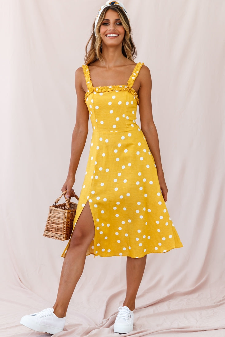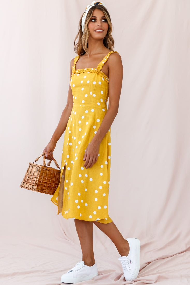 Magdalene Frill Strap A-Line Midi Dress Yellow Mustard