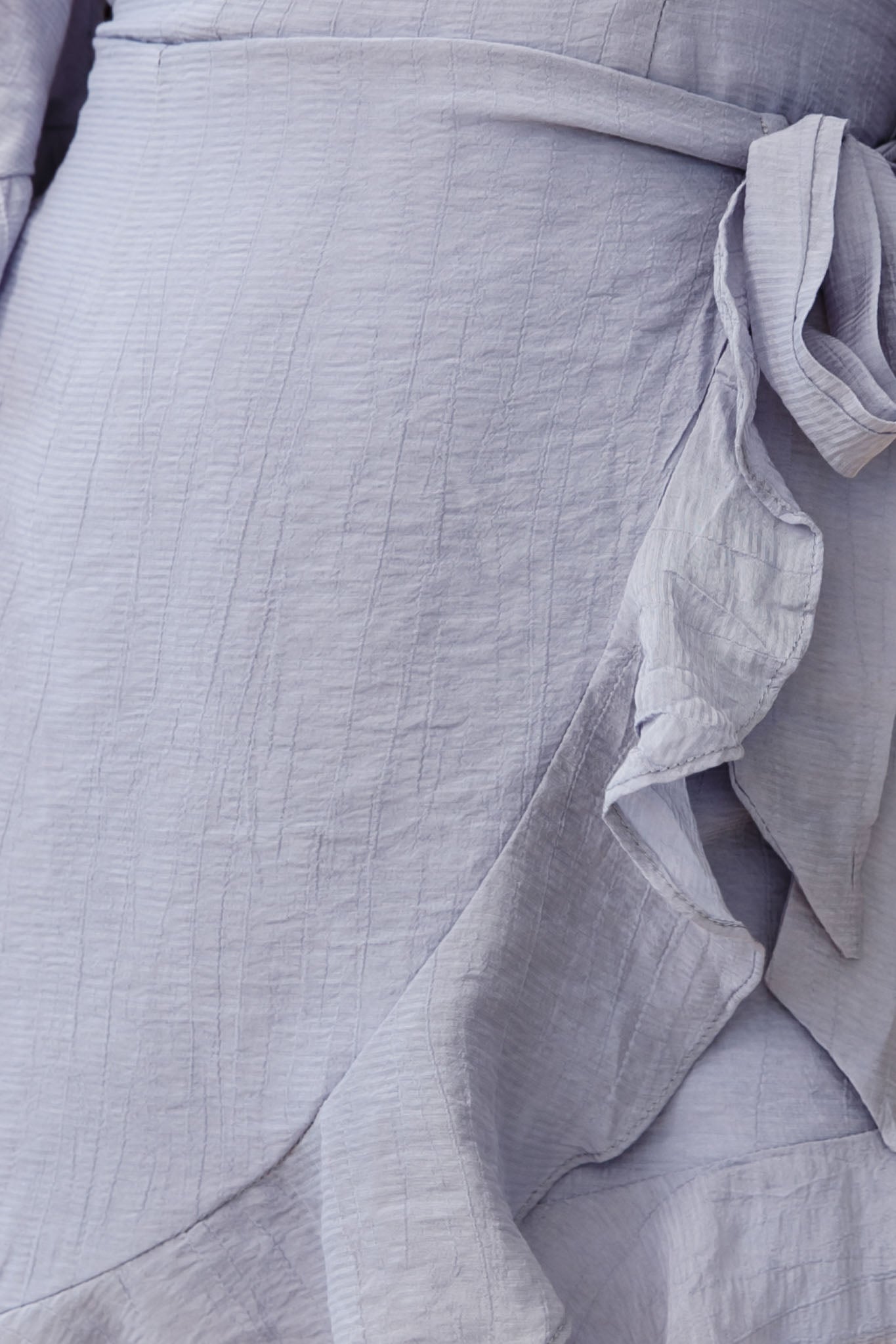 Make It Happen Flared Sleeve Ruffle Trim Dress Steel Blue