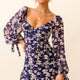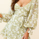 Make Memories Balloon Sleeve Molded Bust Dress Leaf Print Olive