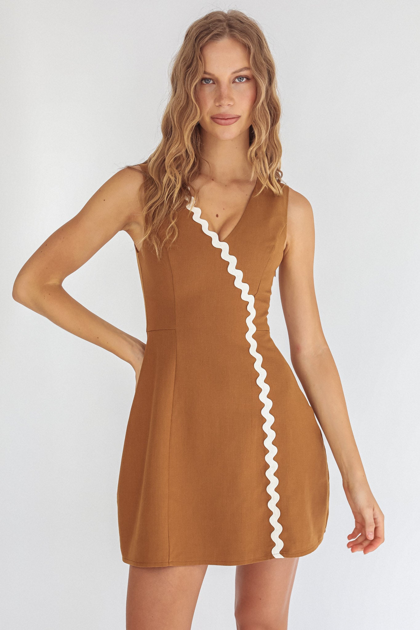 Make You Mine V-Neck Ric-Rac Mini Dress Brown