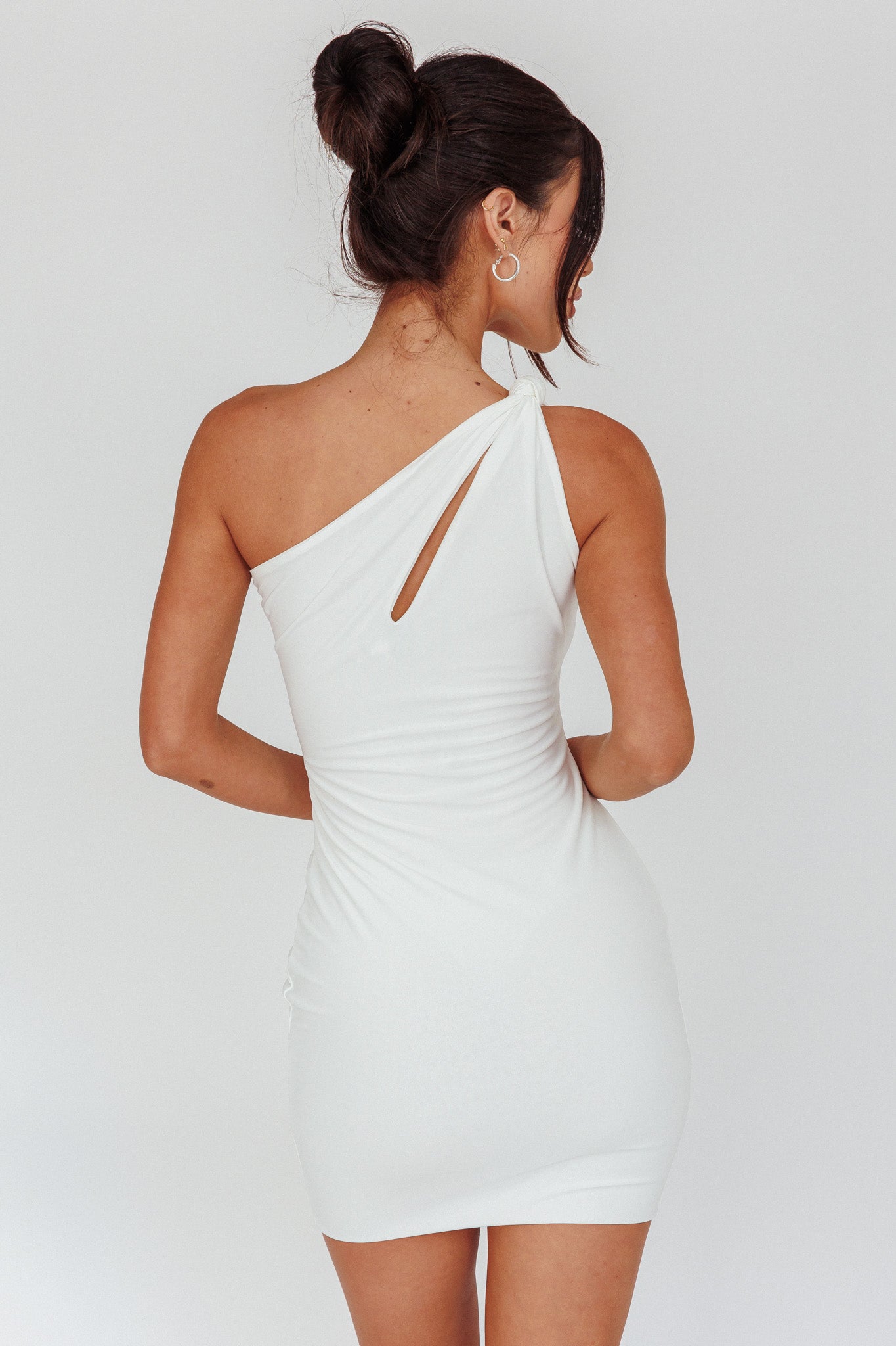 Malaga One-Shoulder Keyhole Mini Dress Off White
