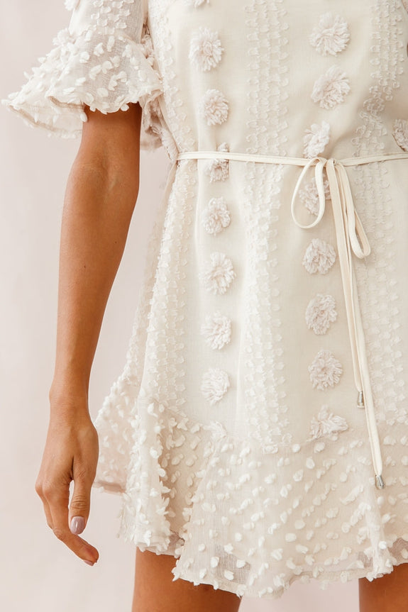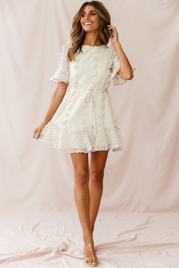 Fall in love with our classic Maleny dress. Partially lined, it features the prettiest embellished fabric, cut-out back, fluted hem and sleeves and a separate string tie around the waist. Perfect for when you need to look modest yet oh-so-chic. Team it with pearl earrings and nude pumps for a look fit for a princess.