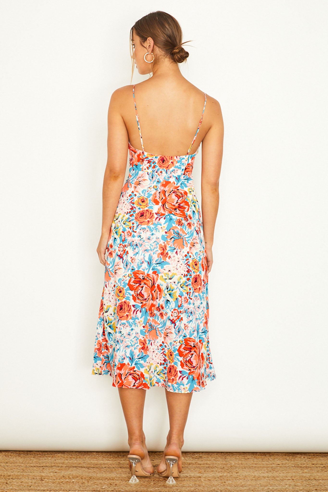 Malibu Gathered Bust Cami Strap Midi Dress Floral Orange