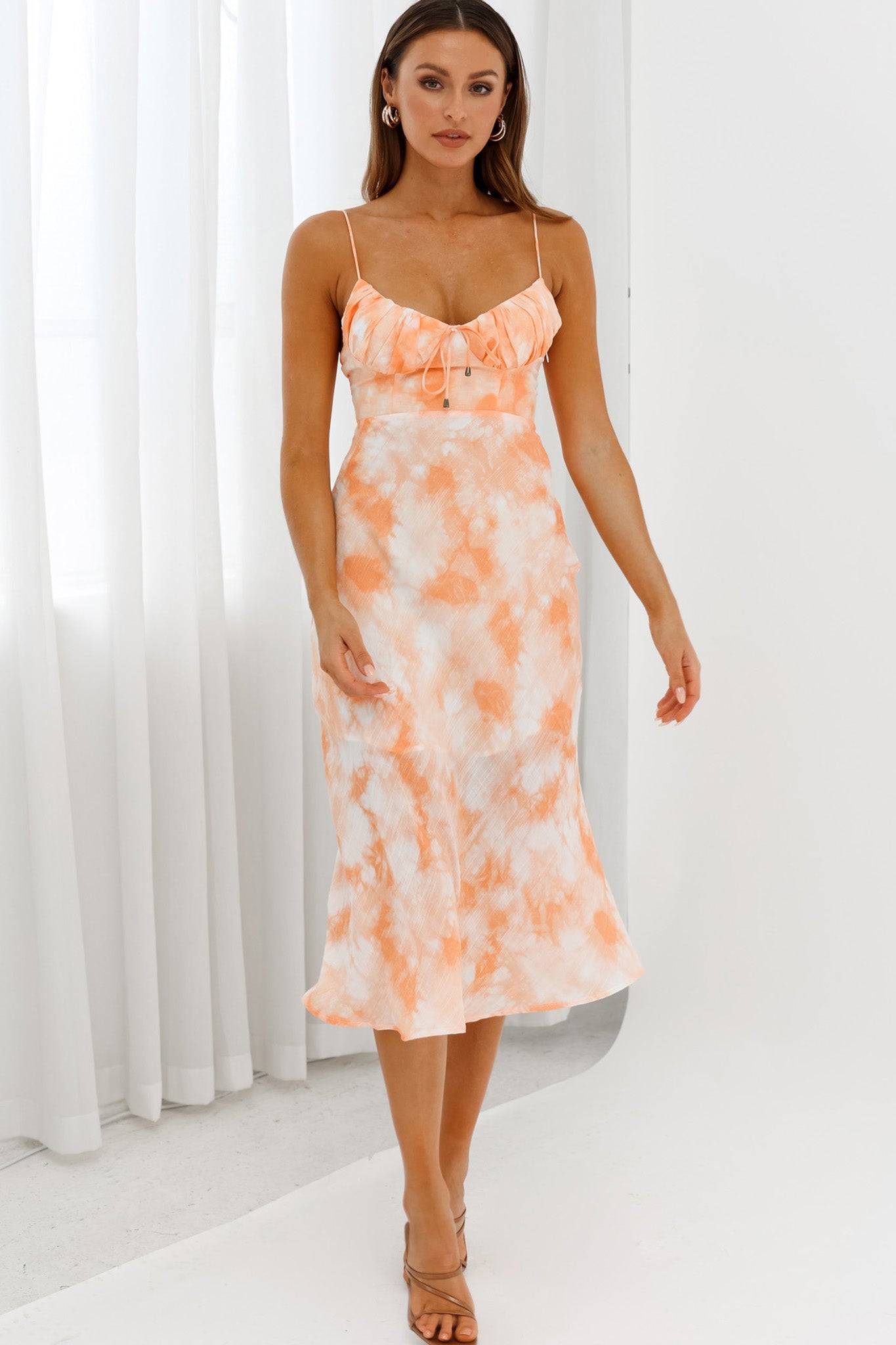 Hey there, pretty lady. Heads will turn when you walk by in our gorgeous Malibu dress. We are obsessed with the gathered bust with string tie detail and beachy tie-dye print. Perfect for warm, Summer nights, sipping a cocktail at your fave beachside bar. Team it with mules and a tote to complete the look.