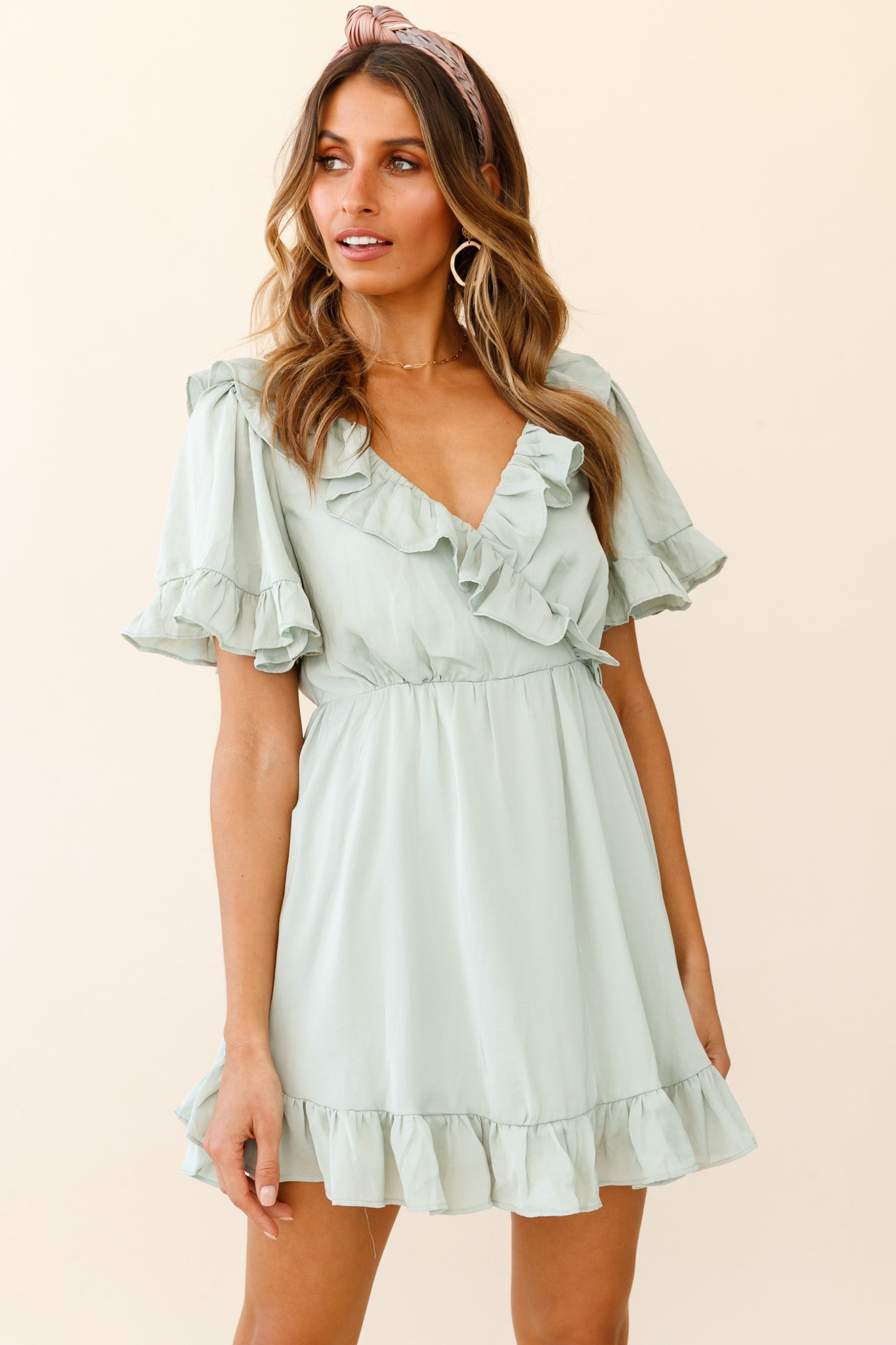 Malika Angel Sleeve Ruffle Trim Dress Pistachio