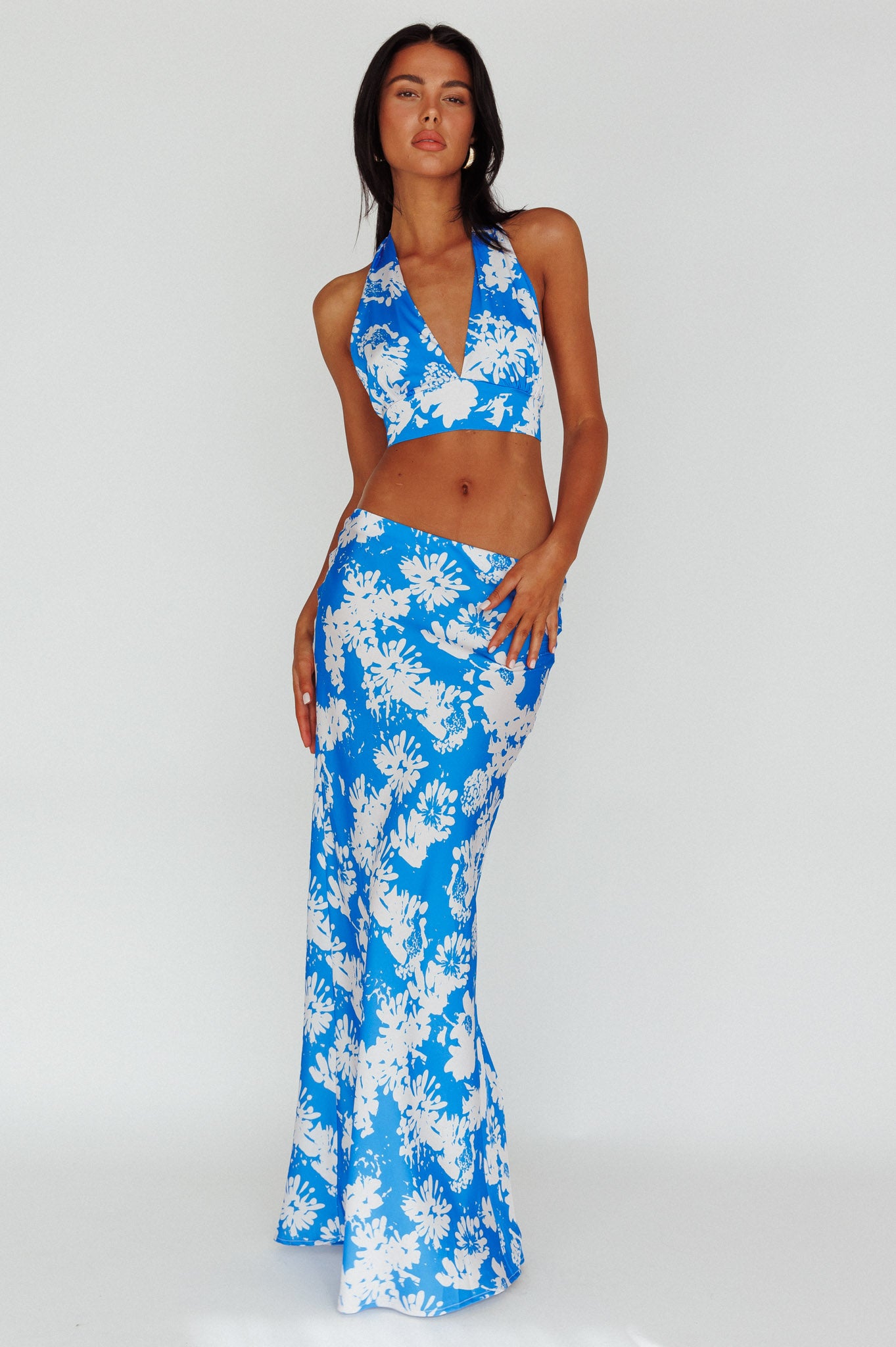 Make an entrance in our pretty Manila crop top. We are in love with its chic halterneck style and pretty floral print. Perfect for dinner dates with your besties teamed with its matching skirt and sandals for a look we are loving.