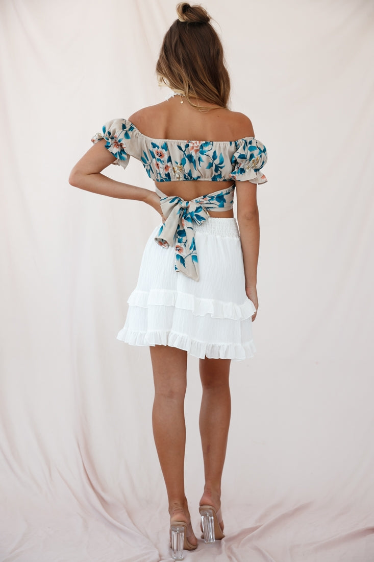 Twirl the day away in our adorable Mara skirt. Fully lined, it features an elasticated waist with button details, crepe textured chiffon fabric, frill trim details and an asymmetric hem. Perfect for your Spring/Summer wardrobe. Pair it with a cute crop top or tank top. Dress it up with some tan wedges or go casual with some crisp white sneakers for a look we are loving.