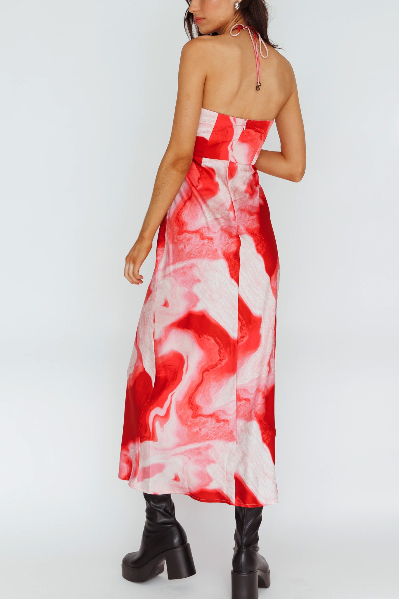 Marcello Cowl Halterneck Midi Dress Marble Red