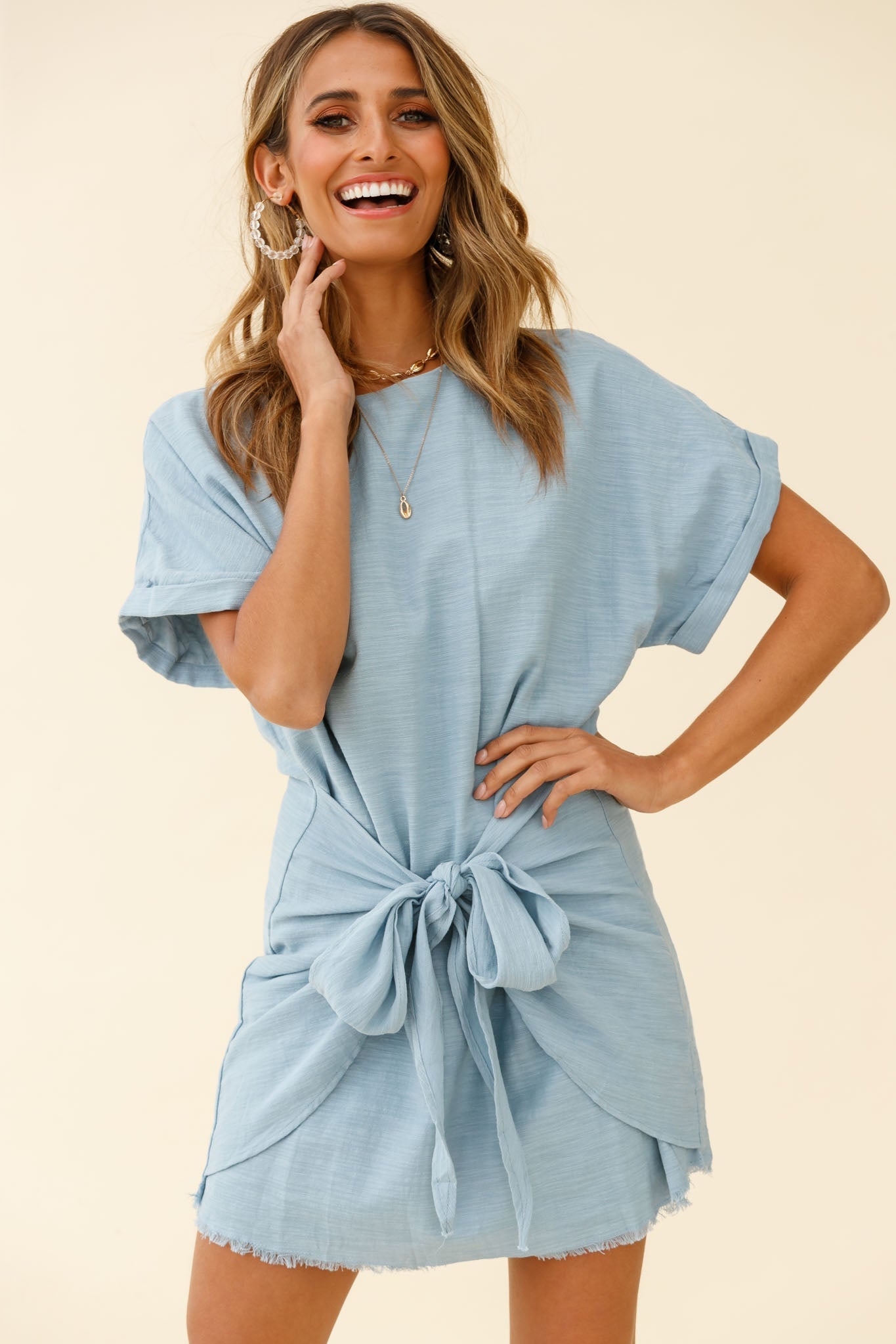 Marci Loose Fit Tie Feature Shirt Dress Blue