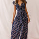 Marcia Ruffle Strap Wide Leg Jumpsuit Floral Print Navy/Pink