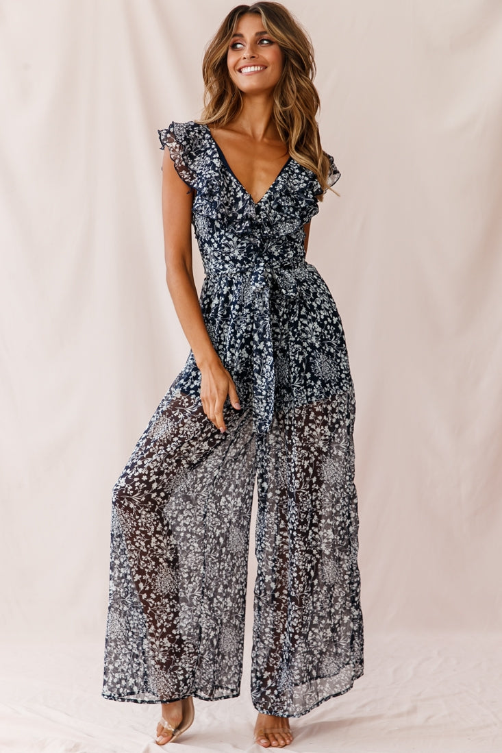 Marcia Ruffle Strap Wide Leg Jumpsuit Navy/White