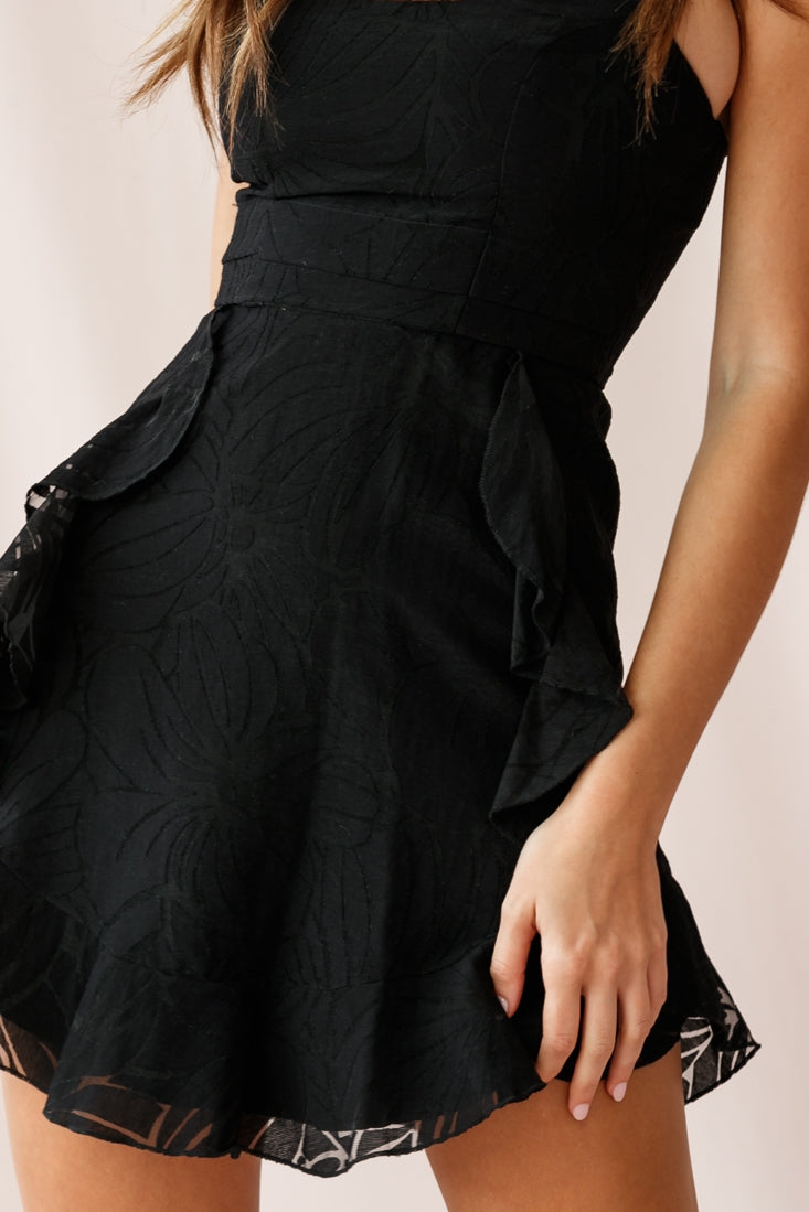 Fall in love with our classy Marcoola dress. Partially lined and featuring adjustable cami straps, a fitted bodice, frill details and invisible zipper in the back. Perfect for elegant daytime or evening events teamed with nude heels and a clutch.