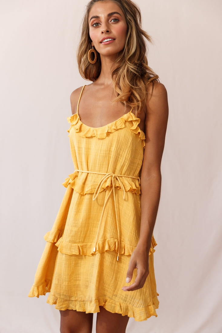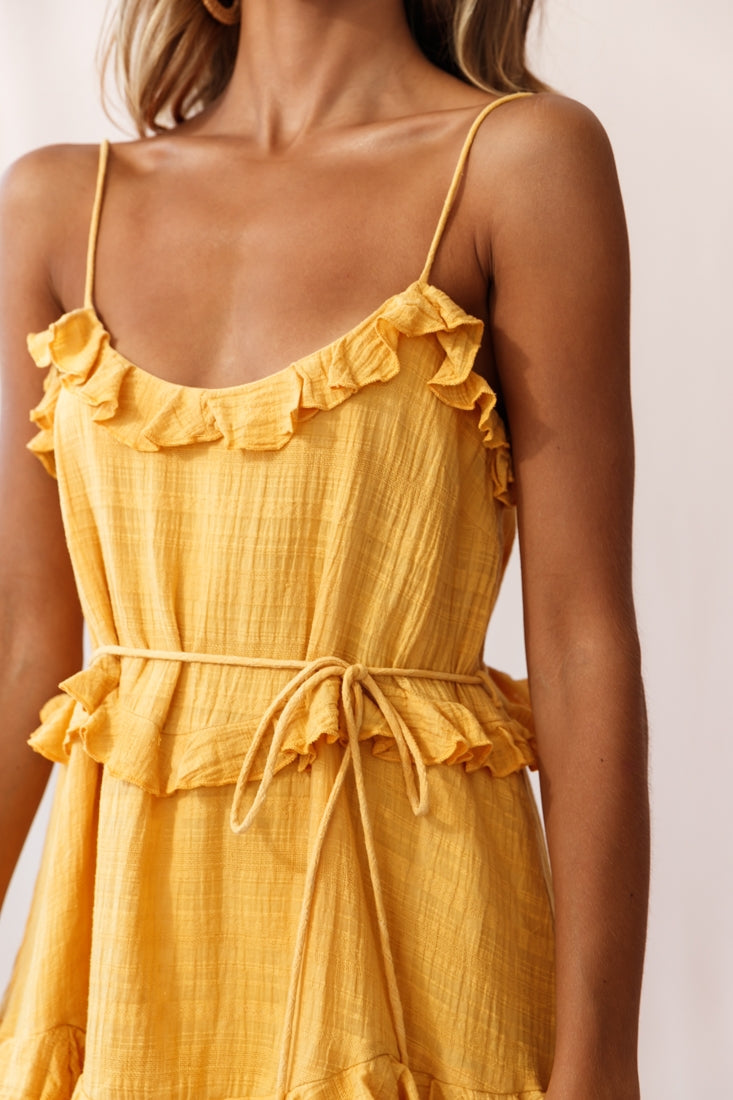 Maria Frill Trim Spaghetti Strap Dress Mustard