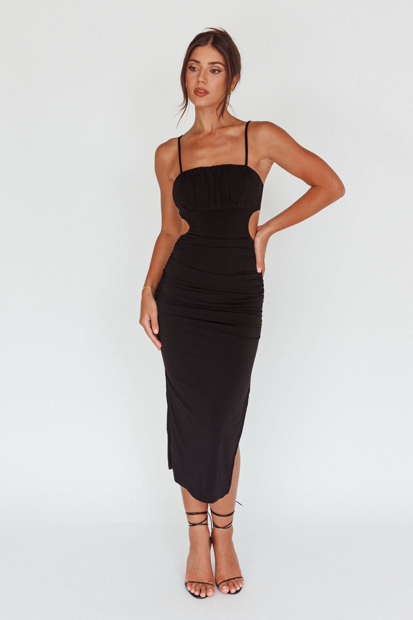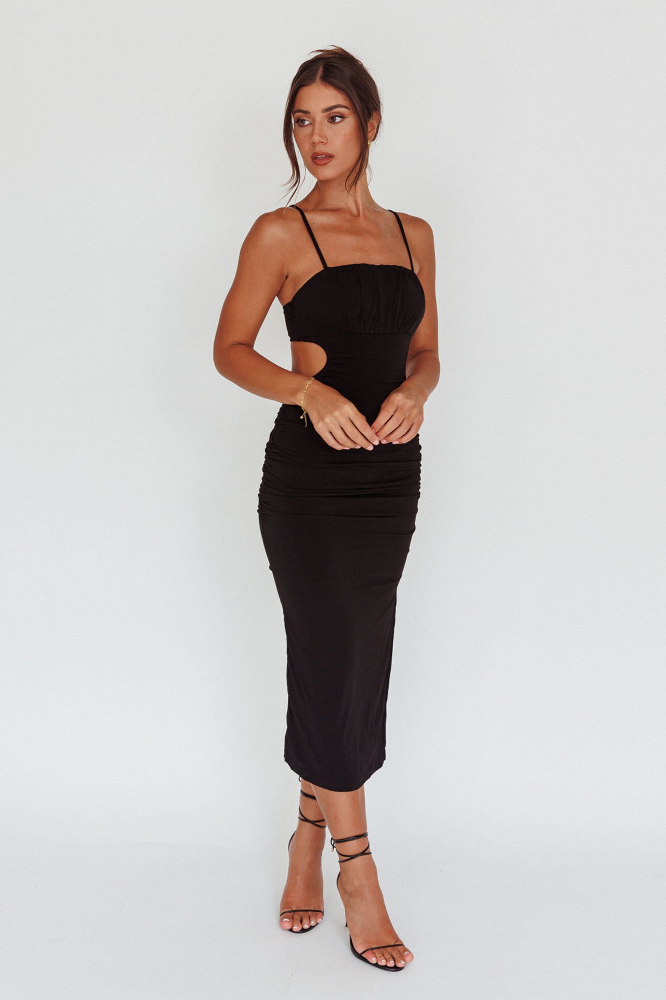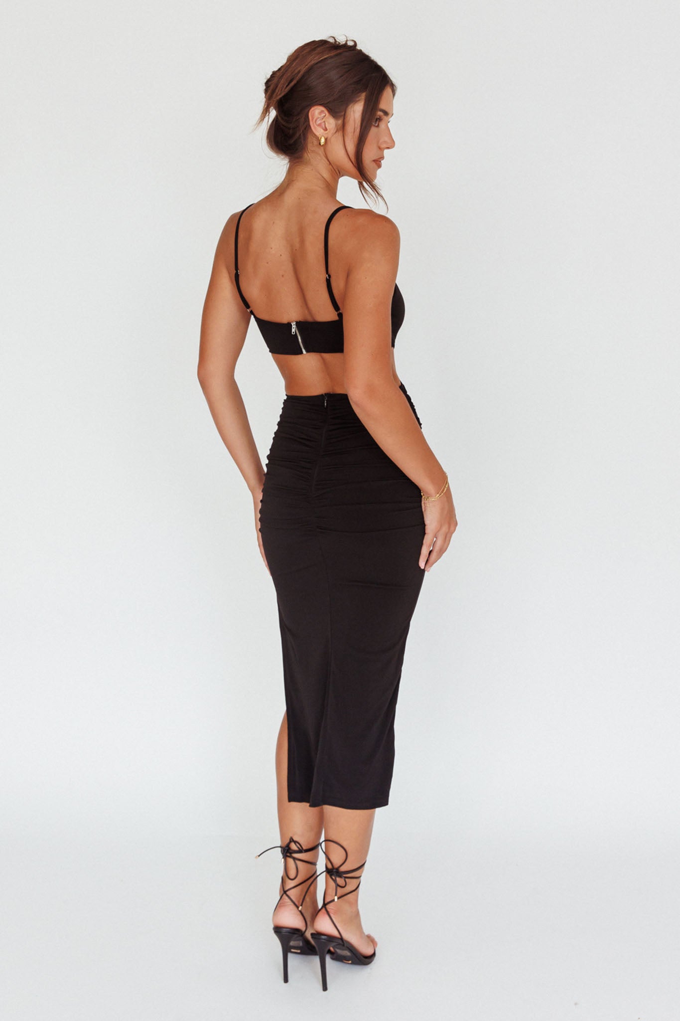 You'll be turning heads in our stunning Mary Jane midi dress. Featuring a cut-out waist that gives a two piece illusion in the back, it's perfect for a special occasion or a dinner date with your lover. Team it with nude, strappy heels and gold accessories for a luxe look we are loving.