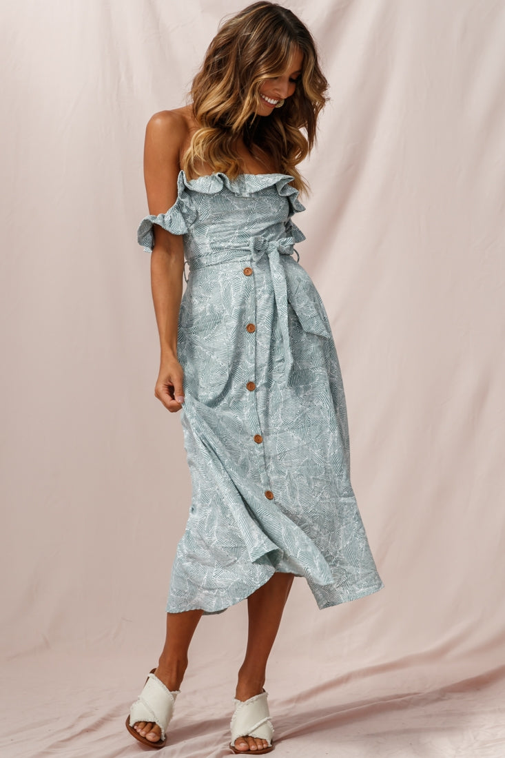 Matisse Off-Shoulder Placket Dress Sage Pattern