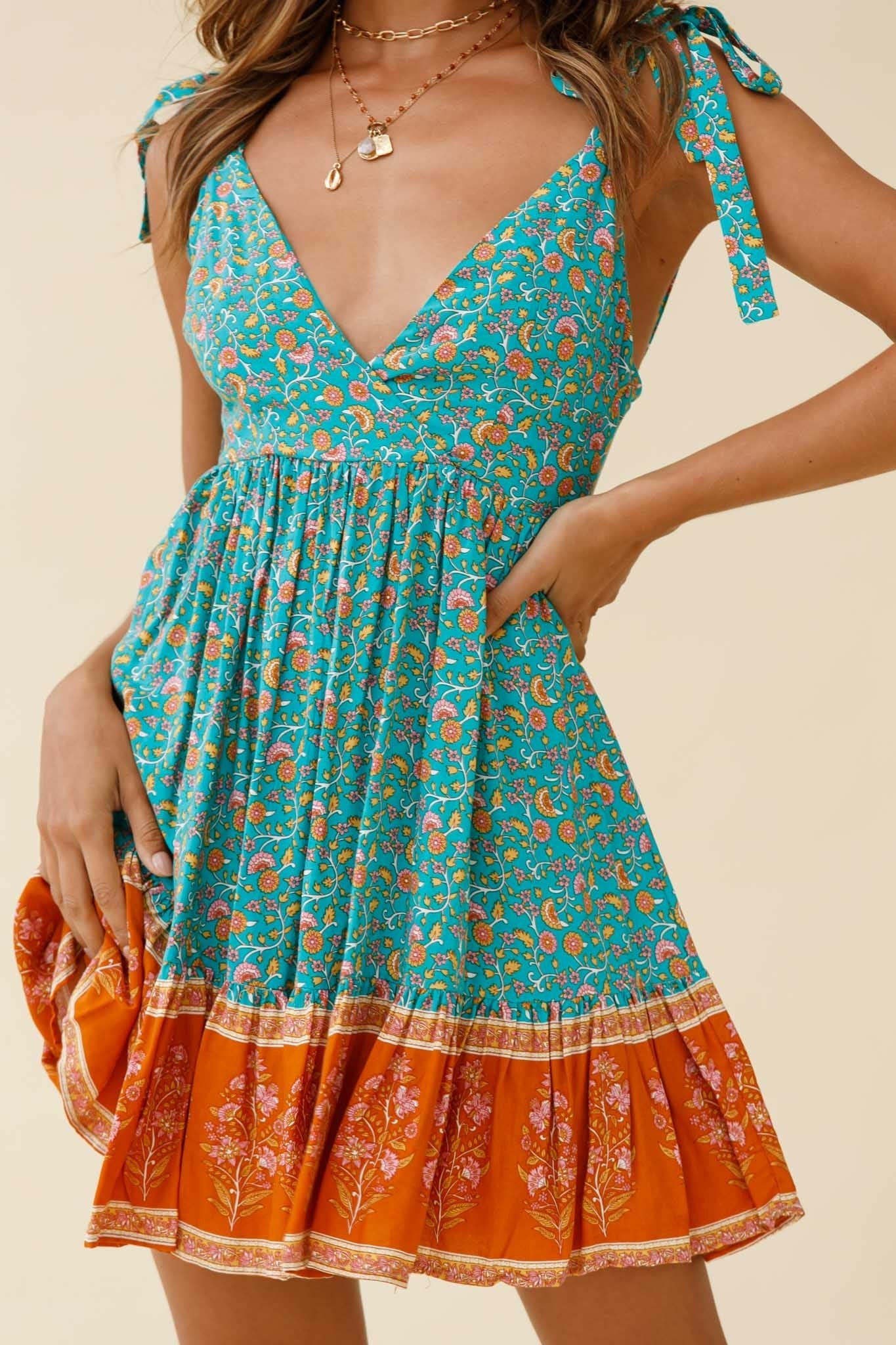 Jaws will drop as you strut by in our super cute Maven dress. Featuring adorable tied shoulder straps, a swing skirt with frill hem and a sexy low back to show off that new Summer tan. Perfect for a day by the beach or dressed up for a brunch date. Team it with wedges and a straw bag for a look we are loving.
