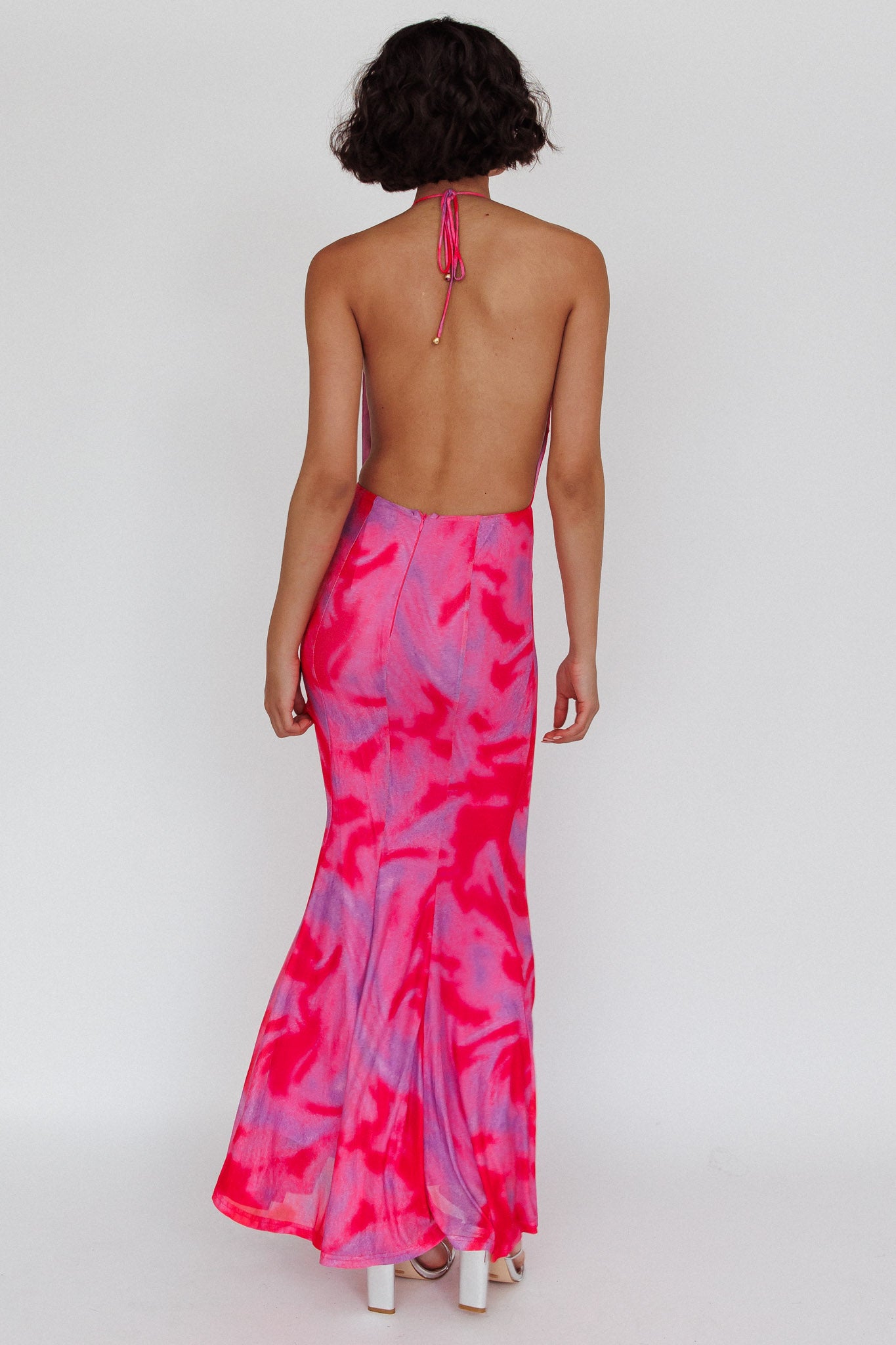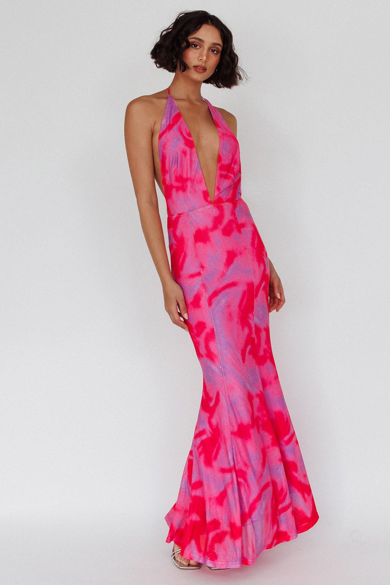 Mayah Halterneck Maxi Dress Printed Hot Pink