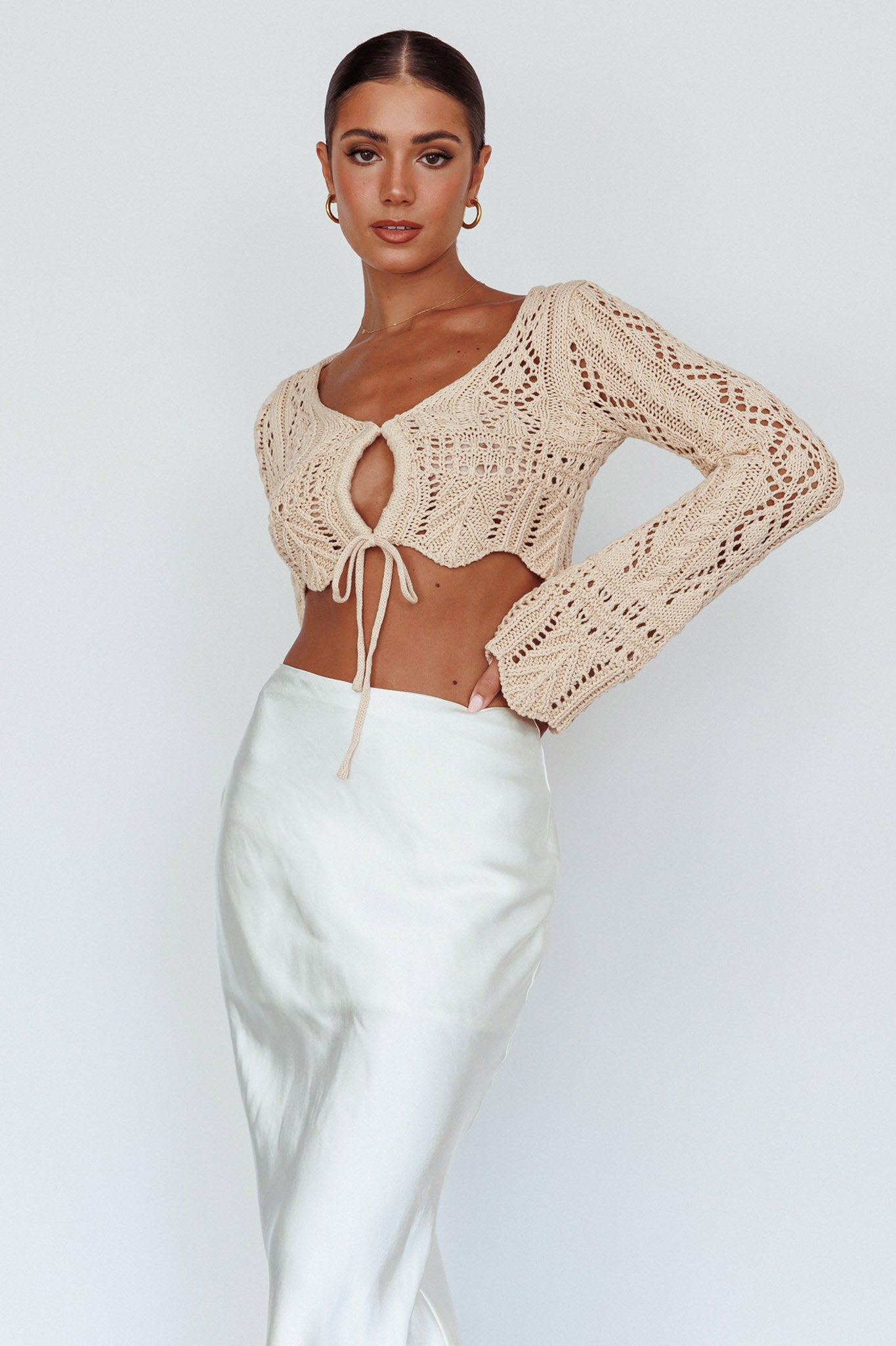 Heads will turn when you walk by in our hot Maycie top. Featuring on-trend crochet knit and a drawstring keyhole in the bust. It's perfect for beachside strolls or sunset happy hours. Team it with a maxi skirt and sandals for major boho vibes.