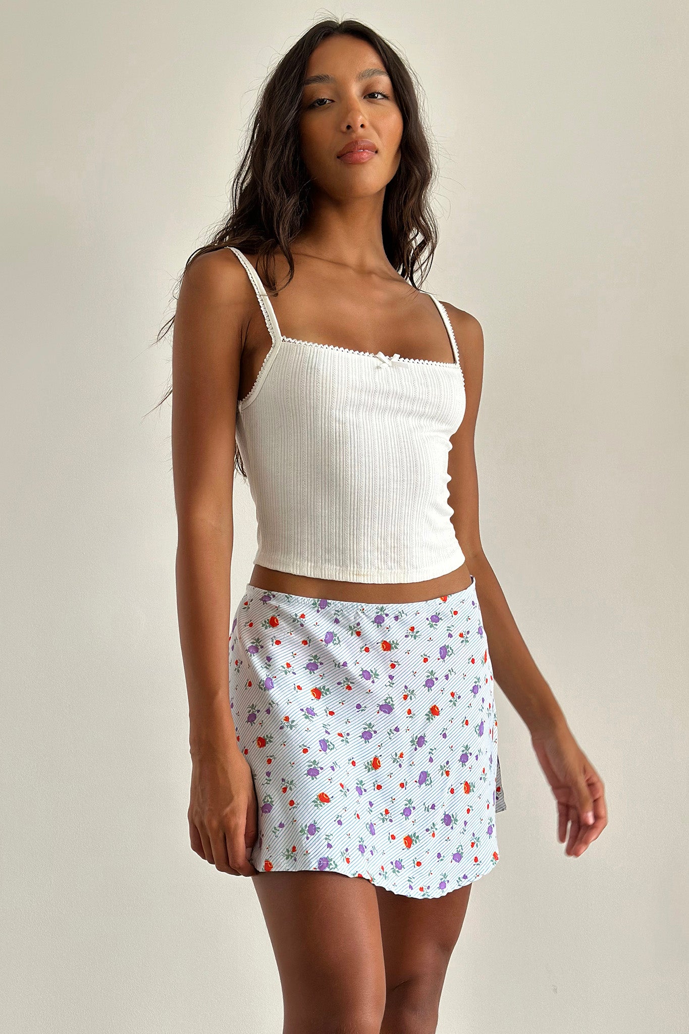 Say hello to the dreamy Mckenna skirt! It features a low-rise design and delicate floral print and is just what you need for Sunday brunch with your fave girlies. Team it with a tank top and slides for an effortless, chic look that will have you reaching It Girl status!
