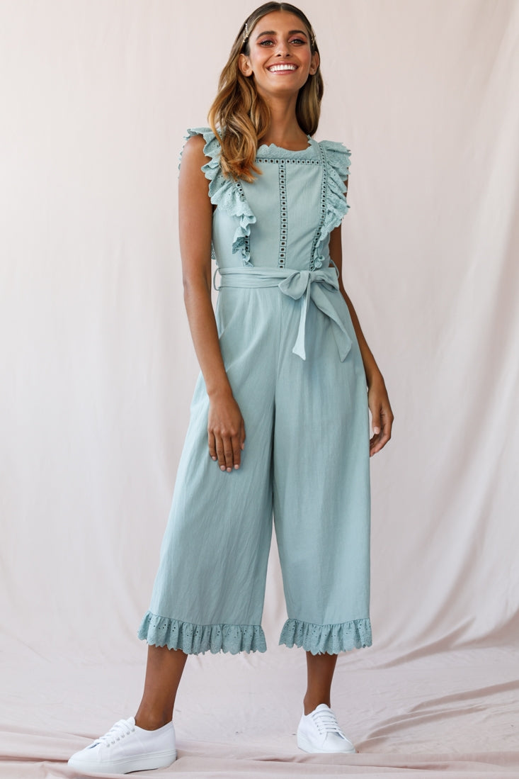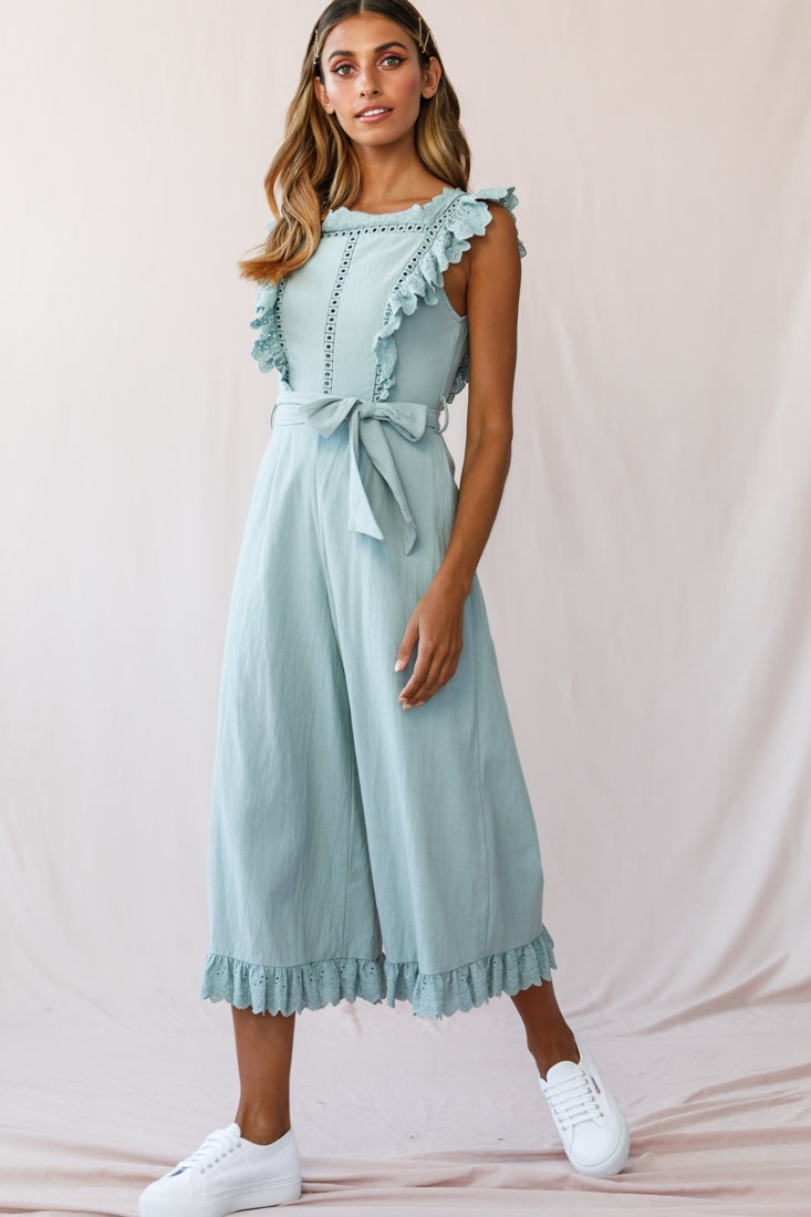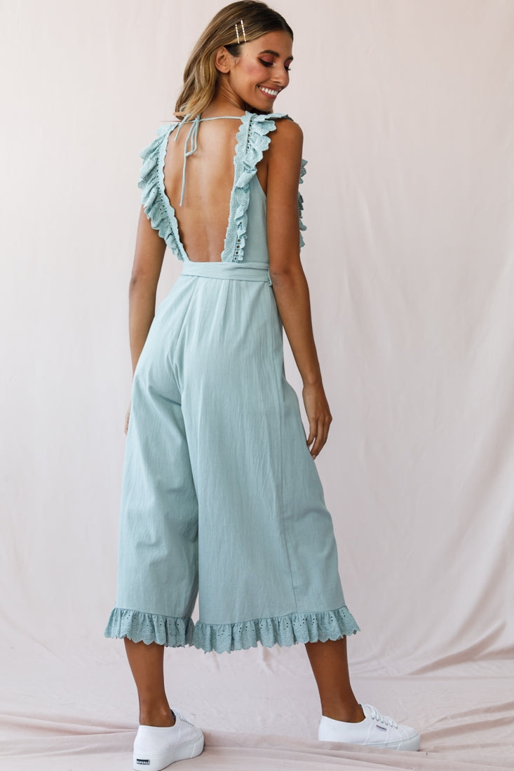 Meadow Ruffle Strap Open Back Midi Jumpsuit Sage