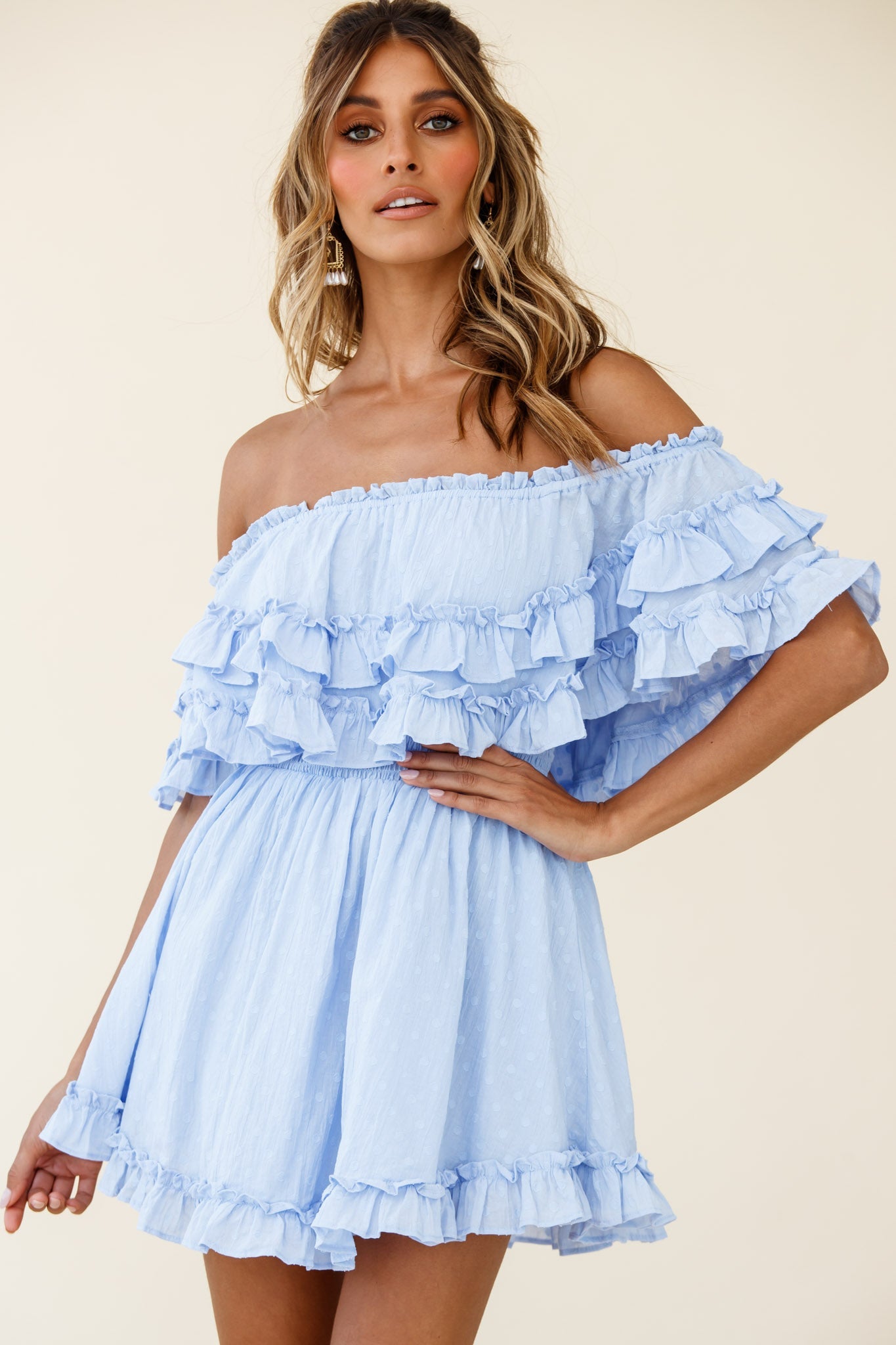 You'll look as pretty as a picture in our Meet Me At Sunset dress. We are obsessed with those girly frill details and on-trend bardot neckline that can also be worn on the shoulders. Perfect for flirty happy hours by the beach teamed with canvas wedges and a mojito.