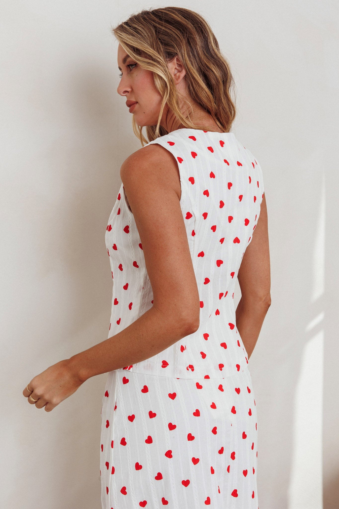 The weekend is calling and we have the perfect top for sunny picnics and coffee dates with your besties. We are loving the tied-front closure and pretty heart print on our Meet Me There vest top and it looks amazing teamed with its matching maxi skirt and sandals for a chic, effortless look.