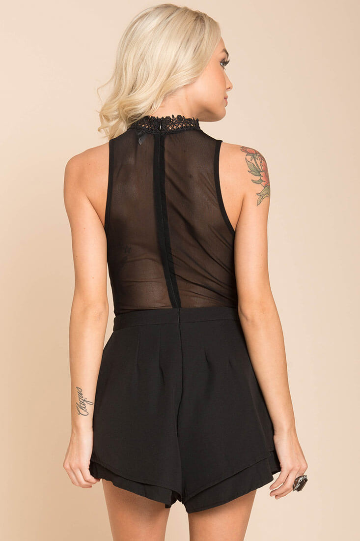Daring and dreaming, this embroidered floral detail gather over the bust of this V-neck romper. Wait with cute pumps.
