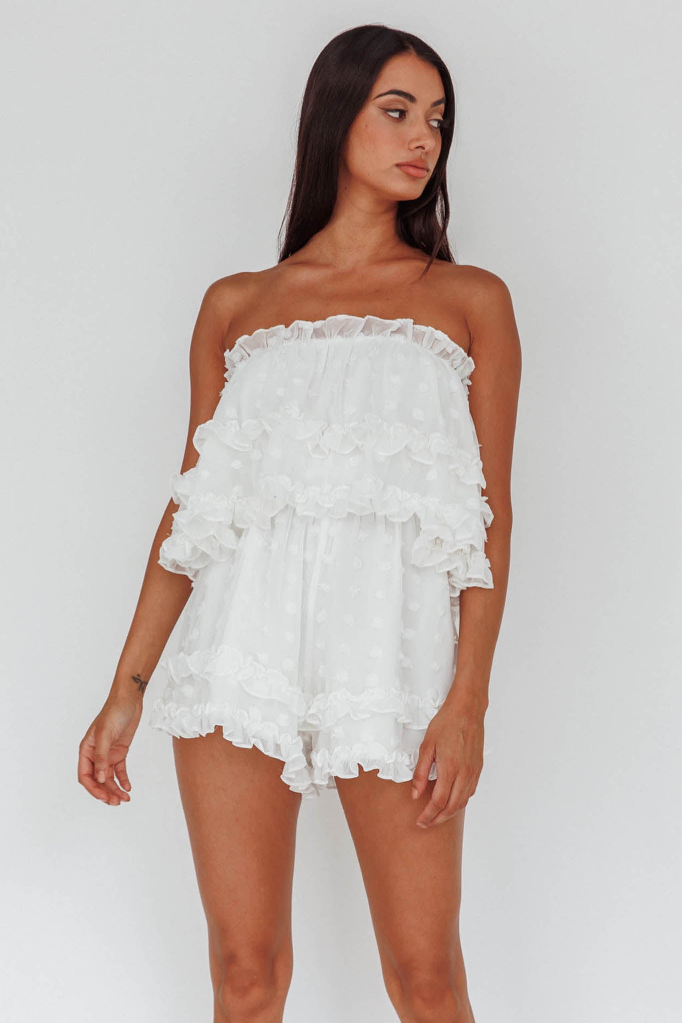 Make an entrance in our gorgeous Memories romper. We are obsessed with the textured chiffon and frill details. Perfect for a bachelorette party or special occasion. Team it with statement heels and a clutch for a look that won't be forgotten too easy.